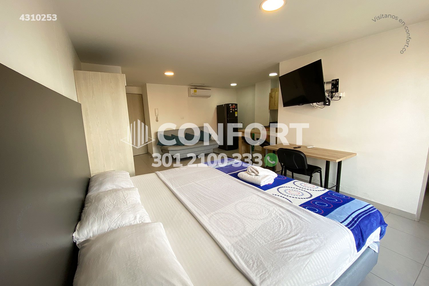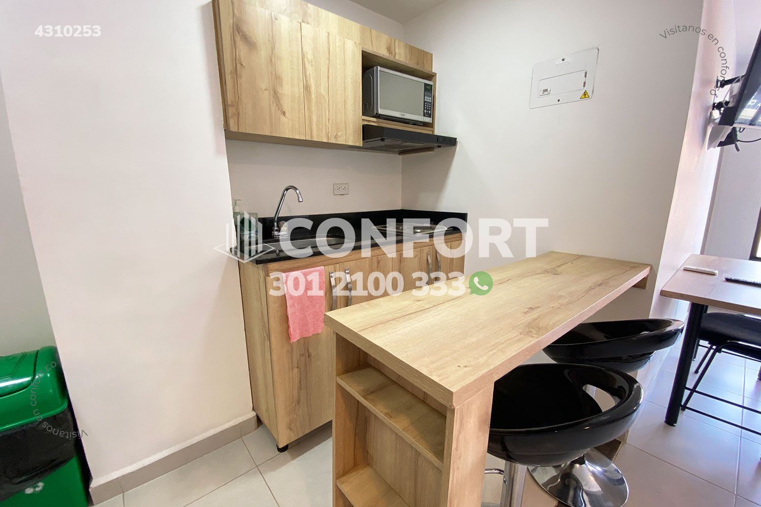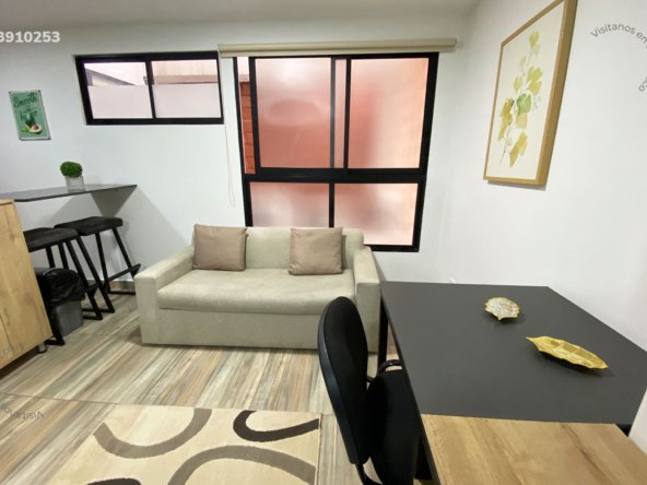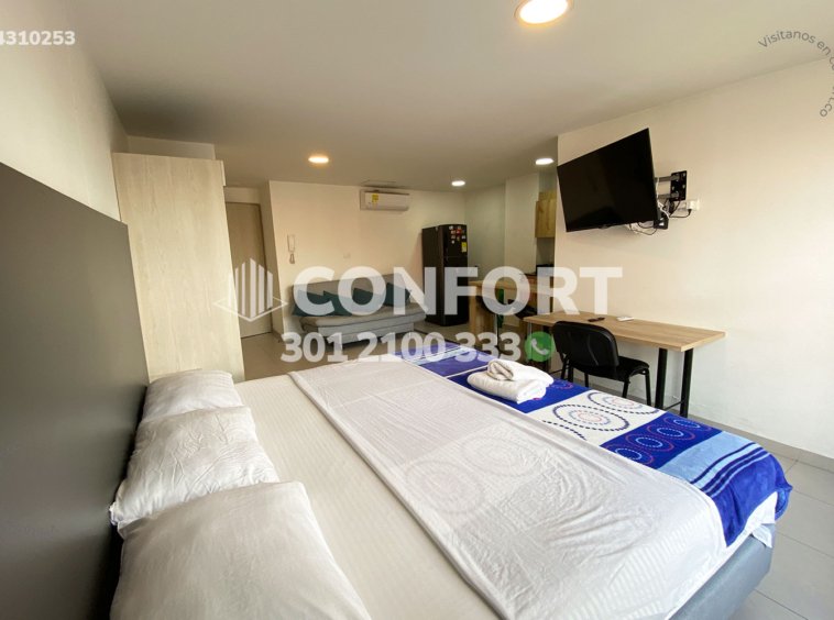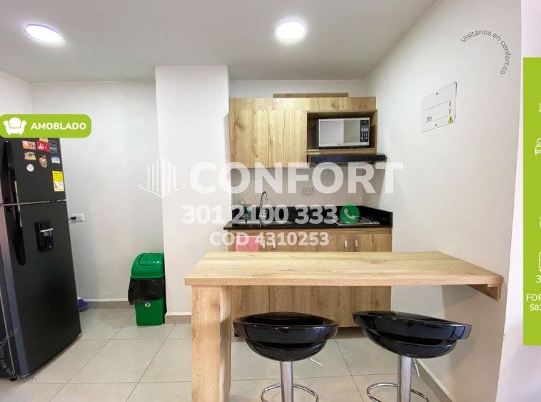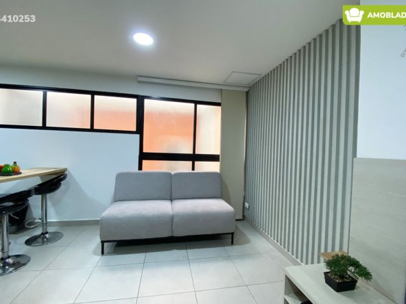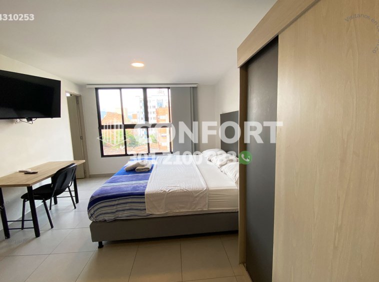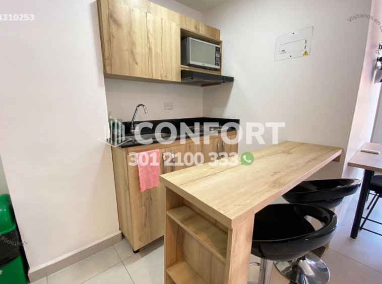 43-10-253 Inmobiliria en Medellín arrienda apartaestudio amoblado ubicado en el sector de Laureles. Cuenta con un área de 32mt2 distribuidos en sala, cocina semi integral dotada, barra americana, habitación con closet, baño, cuenta con calentador de agua, aire acondicionado y black out. El valor incluye servicios de agua, luz e internet y aseo general una vez por semana. Se encuentra ubicado en tranquilo sector con seguridad 24/7, actualmente no cuenta con parqueadero disponible en el sótano, sin embargo, la calle es cerrada y cuenta con amplios espacios para parquear de forma segura. A su alrededor podemos encontrar universidad UPB, centro comercial Unicentro, tiendas D1. Con vías de acceso por avenida Bolivariana, carrera 65 y gran variedad de transporte público. CONFORT GESTORES INMOBILIARIOS – Arriendo en Laureles