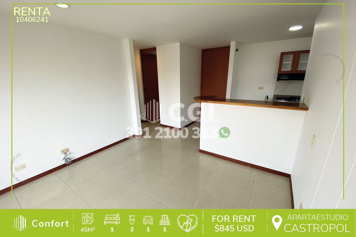 Canon de renta $3.300.000 COP o, $845 USD