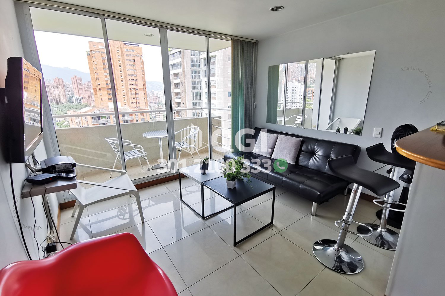 146-04-241 Lindo apartaestudio disponible para la renta, este consta de 47mts², sala comedor, balcón con hermosa vista, cocina integral con barra americana, baño social, y una habitación con baño y vestier, zona de ropas, parqueadero cubierto y cuarto útil. El edificio residencial tiene portería 24/7 y ascensor. La ubicación céntrica del inmueble ofrece cercanía al parque del Poblado, Provenza, Parque lleras y fácil acceso por Avenida el Poblado Y Avenida Las Palmas. CONFORT INMOBILIARIA