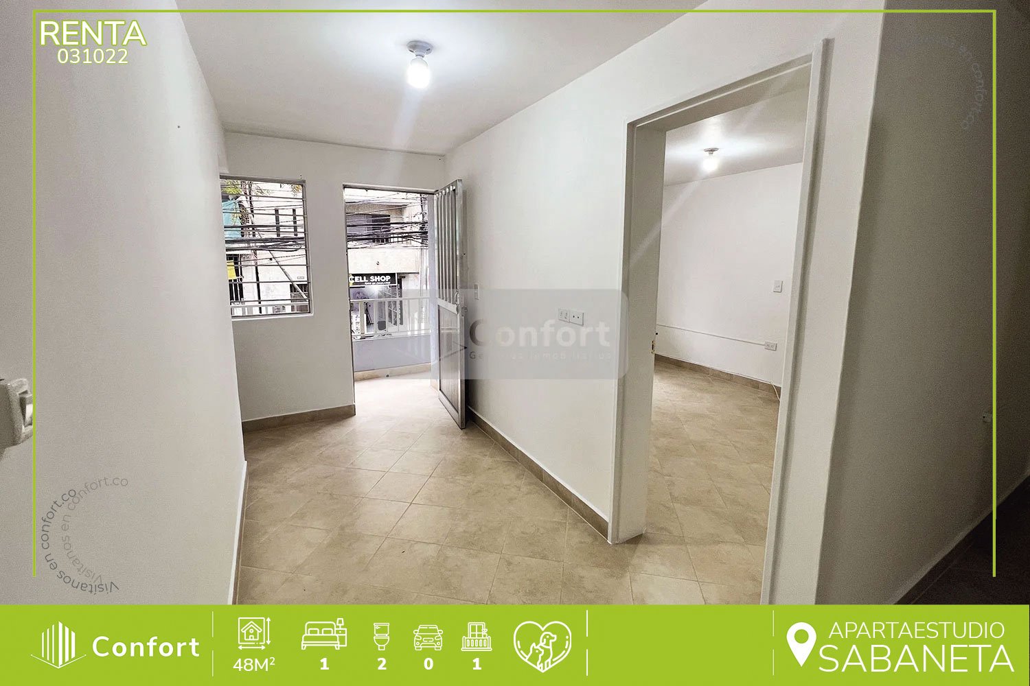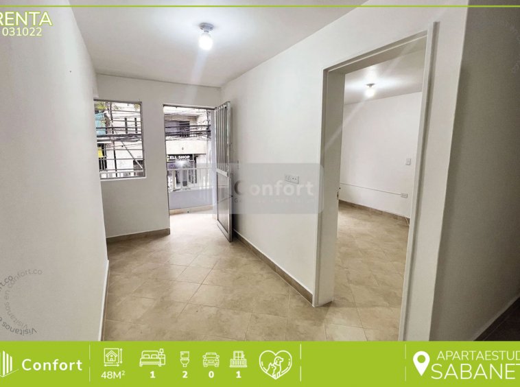03-10-22 Inmobiliaria en Medellín arrienda apartaestudio ubicado en el sector de Sabaneta, cuenta con un área de 48mt2 distribuidos en sala comedor, cocina semi integral, patio, zona de ropas, espacio para estudio, baño social, habitación con baño privado y balcón. A su alrededor podemos encontrar el parque de Sabaneta, mall Plaza de Sabaneta y la Cámara de Comercio Aburrá Sur, con vías de acceso por la avenida Las Vegas, calle 69 sur y amplia variedad de rutas de transporte público. CONFORT GESTORES INMOBILIARIOS – Arriendo en Sabaneta