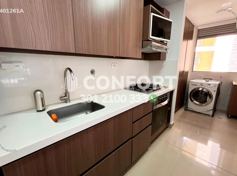 14-01-261A Inmobiliaria en Medellín arrienda apartamento amoblado ubicado en el sector de Castropol en el Poblado. Cuenta con un área de 115mt2 distribuidos en sala comedor, balcón, cocina integral con barra americana, zona de ropas, baño de servicio, sala de estudio, 2 baños sociales, 3 habitaciones, la principal de ellas con baño privado y vestier, además cuenta con 2 parqueaderos privados y cuarto útil. Ubicado en unidad residencial con seguridad 24/7 con zonas comunes como piscina para niños y adultos, sauna, turco, cancha de squash, cancha sintética, salón social, gimnasio, parque infantil. A sus alrededores podemos encontrar D1, parque del Poblado, Interplaza. Con vías de acceso por avenida las Palmas, avenida el Poblado y gran variedad de rutas de transporte público. CONFORT GESTORES INMOBILIARIOS – Arriendo en el Poblado