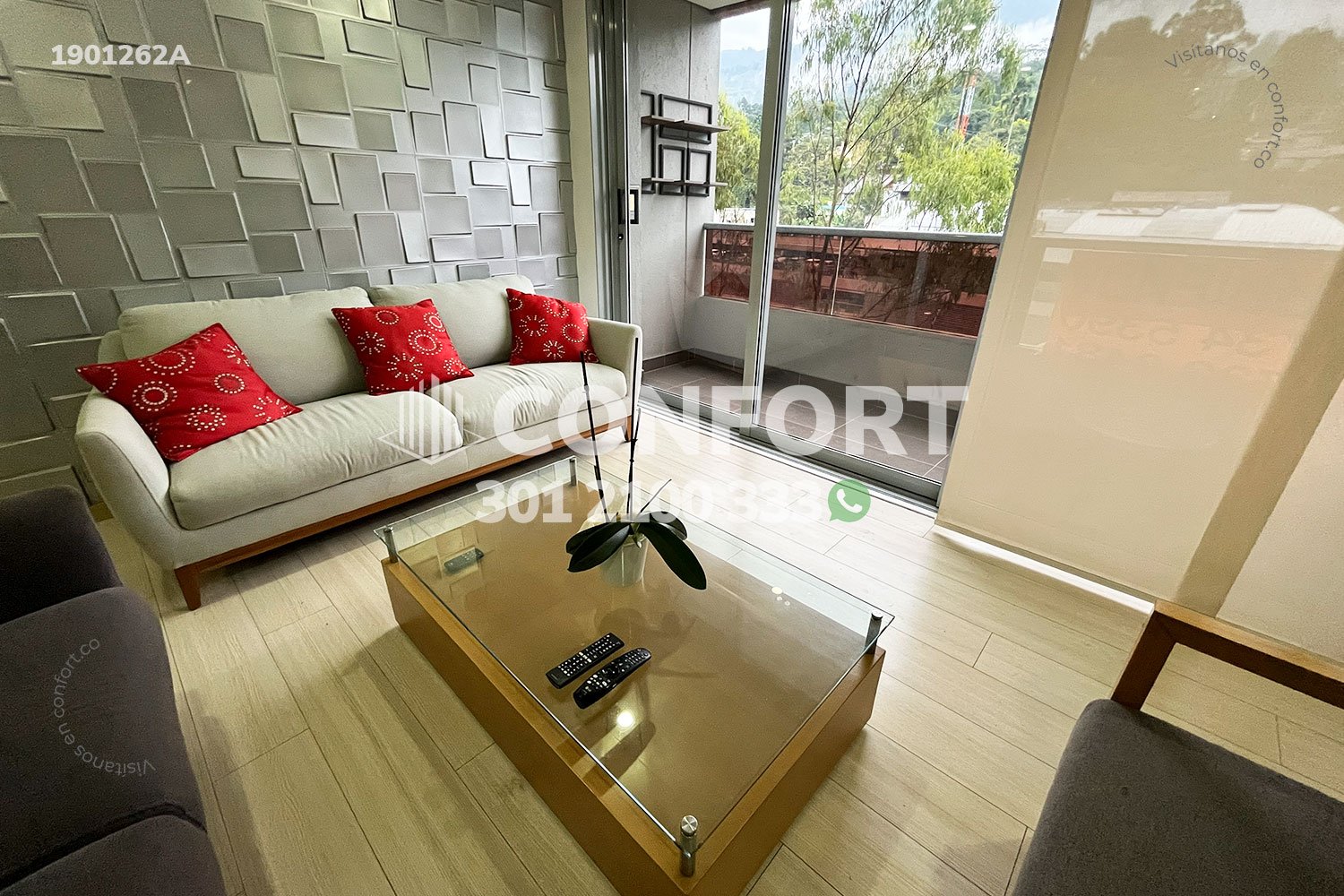 19-01-262A Inmobiliaria en Medellín arrienda apartamento amoblado ubicado en el sector de Cumbres en Envigado. Cuenta con un área de 120mt2 distribuidos en sala comedor, cocina integral, zona de ropas, 2 habitaciones con baño privado y la principal con vestier, baño social, balcón y parqueadero privado. Ubicado en unidad con seguridad privada 24/7 y zonas comunes tales como salón social, juegos infantiles, piscina para adultos y niños, gimnasio, turco y zonas verdes, a su alrededor podemos encontrar el Mall Terracina Plaza, centro comercial City Plaza y SmartFit, con vías de acceso por la avenida El Poblado, transversal intermedia y gran variedad de transporte público. CONFORT GESTORES INMOBILIARIOS – Arriendo en Envigado