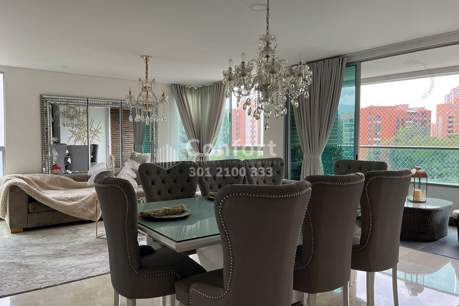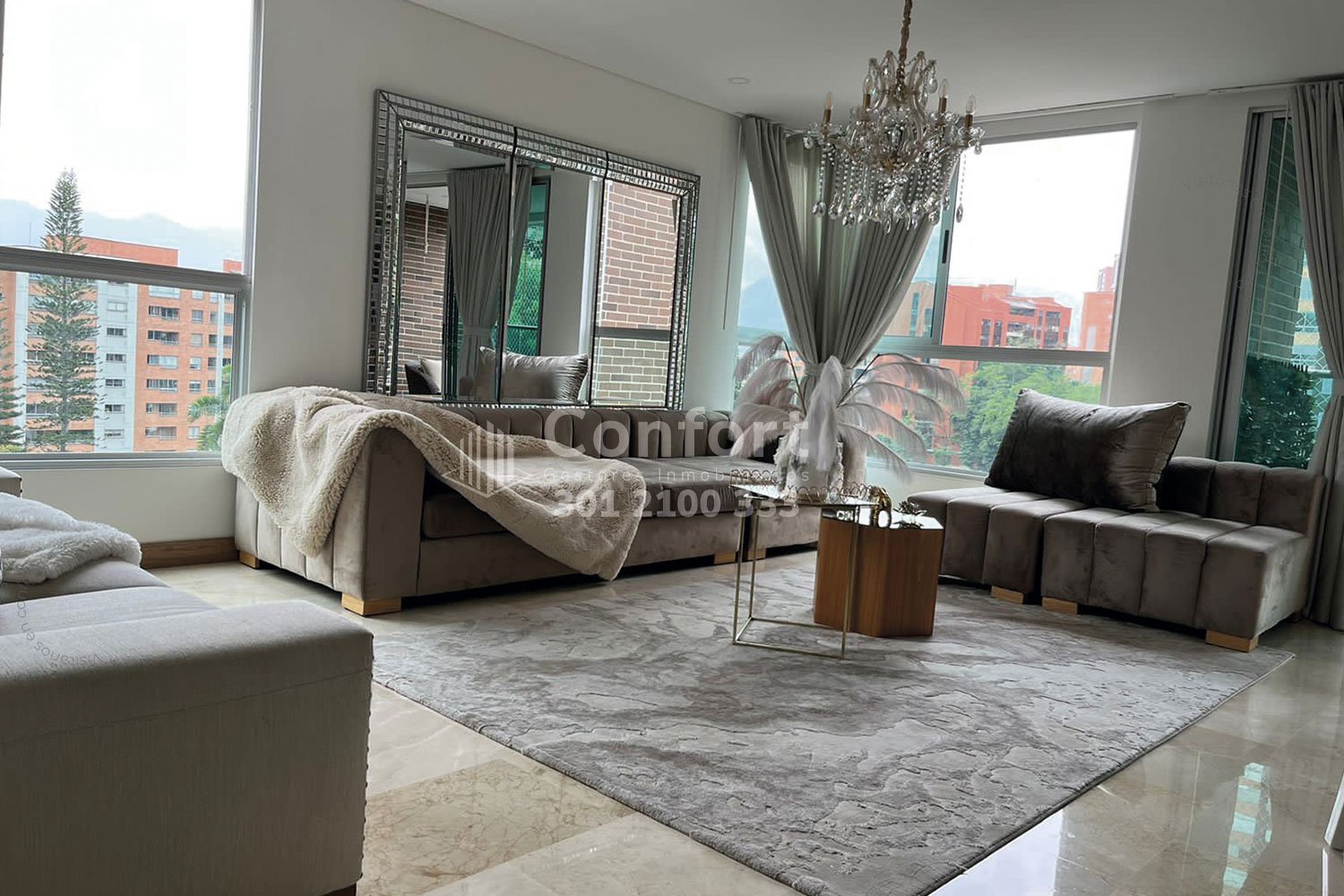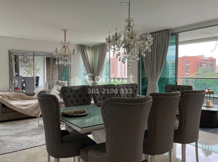 01-03-24 Hermoso y moderno apartamento amoblado disponible para la renta ubicado en el sector del Poblado, cuenta con un área de 136mt2, distribuidos en una sala comedor de muy buen espacio, cocina integral con full iluminación y los más hermosos acabados, 3 habitaciones cada una con su respectivo baño privado, 2 closets, vestier, 2 balcones con vista panorámica, baño social, parqueadero y cuarto útil. Este hermoso apartamento esta amoblado con todo lo que necesitas para vivir. Está ubicado en tranquilo sector con vigilancia 24/7 y cuenta con zonas comunes como piscina de niños y adultos, gimnasio, turco, salón social y juegos infantiles. A su alrededor podemos encontrar parque El Poblado, Carulla Palmas y Mall Palms Avenue, con rutas de acceso por Avenida Las Palmas, Avenida El Poblado y gran variedad de transporte público. CONFORT INMOBILIARIA