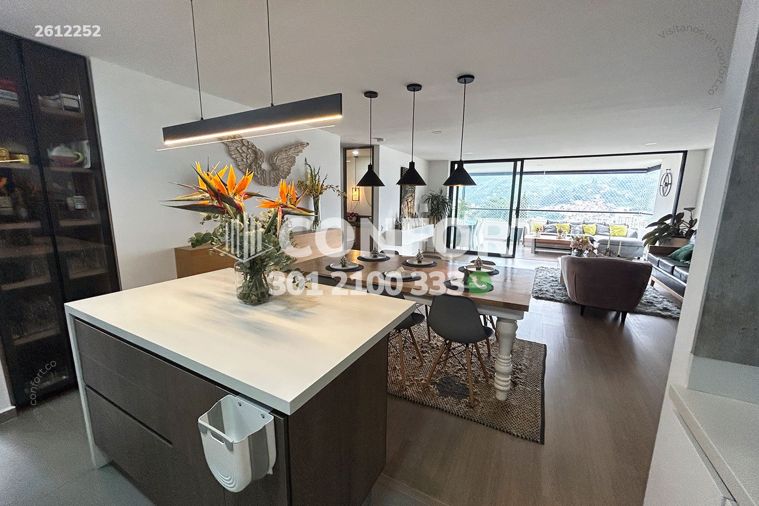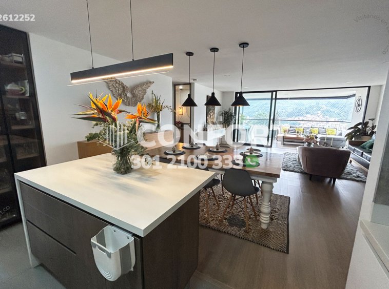 26-12-252 Inmobiliaria en Medellín arrienda apartamento amoblado ubicado en el sector de la Loma de las Brujas en Envigado. Cuenta con un área de 183m2 distribuidos en sala, sala comedor, balcón, cocina integral tipo isla, zona de ropas, habitación de servicio con baño privado, sala de estar, habitación de estudio, baño social, 3 habitaciones con baño privado y vestier, 3 parqueaderos y cuarto útil. Ubicado en unidad residencial con seguridad privada 24/7 y zonas comunes como piscina de adultos y niños, sauna, turco, parque infantil , cancha de squash, salón social, cancha de fútbol y micro fútbol, zona coworking, gimnasio y zonas verdes, a su alrededor podemos encontrar el centro comercial City Plaza, hospital Manuel Uribe Ángel, vías de acceso por la Loma Las Brujas, transversal intermedia y gran variedad de rutas de transporte público. CONFORT GESTORES INMOBILIARIOS – Arriendo en Envigado