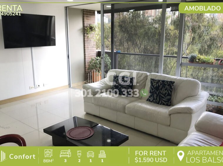 249-05-241 Hermoso y moderno apartamento amoblado disponible para la renta ubicado en Los Balsos en El Poblado, cuenta con 86mt2 distribuidos en sala comedor, cocina integral con muy buena iluminación y barra americana, zona de ropas, balcón, 3 habitaciones, una de ellas con baño privado y vestier, 2 closet, baño social y parqueadero. Se encuentra ubicado en un sector muy tranquilo y cuenta con vigilancia 24/7, zonas comunes como piscina para niños y adultos, turco, salón social y gimnasio. A su alrededor podemos encontrar el Centro Comercial Santafé, museo El Castillo, la Vaquita Supermercado y rutas de acceso por avenida El Poblado, Loma los Balsos y gran variedad de transporte público. CONFORT GESTORES INMOBILIARIOS – Arriendo en El Poblado