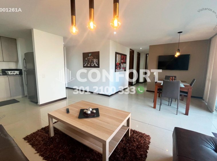 40-01-261A Inmobiliaria en Medellín arrienda apartamento amoblado ubicado en el sector de los Balsos en el Poblado. Cuenta con un área de 100mt2 distribuidos en sala comedor, balcón, zona de ropas, cocina integral con barra, baño social, 3 habitaciones, la principal de ellas cuenta con baño privado y vestier, además cuenta con 2 parqueaderos privados y cuarto útil. Ubicado en unidad residencial con seguridad 24/7 y zonas comunes como piscina para adultos y niños, jacuzzi, parque infantil, salón de juegos, salón social, gimnasio. A sus alrededores podemos encontrar Centro comercial Santa Fe, Centro comercial Oviedo, mall Ventura. Con vías de acceso por avenida el Poblado, Transversal Intermedia y gran variedad de rutas de transporte público. CONFORT GESTORES INMOBILIARIOS – Arriendo en el Poblado