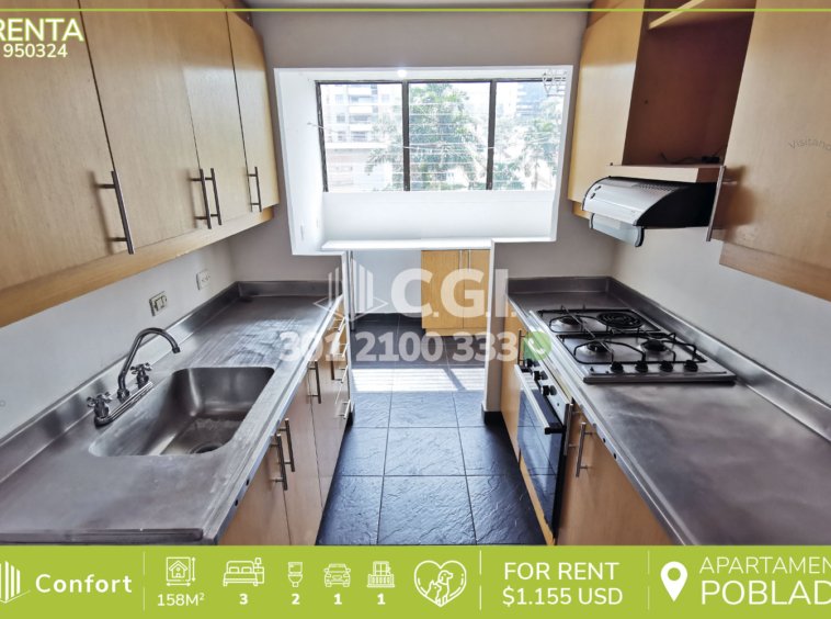 95-03-24 Inmobiliaria en Medellín arrienda apartamento ubicado en el sector de Alejandría en El Poblado, cuenta con un área de 158mts2 distribuidos en sala – comedor, cocina integral, zona de ropas, 3 habitaciones, una de ellas con baño privado y vestier, las otras 2 con clóset, baño social, sala de estar, habitación de servicio con baño privado, parqueadero doble lineal y cuarto útil. Ubicado en unidad cerrada que cuenta con seguridad privada 24/7, shut de basuras, ascensor y zonas comunes tales como piscina para niños y adultos, kiosko, zona BBQ, zona infantil y zonas verdes, a su alrededor podemos encontrar San Fernando Plaza, La Strada centro comercial y Milla de Oro, con vías de acceso por avenida El Poblado y gran variedad de rutas de transporte público. CONFORT GESTORES INMOBILIARIOS – Arriendo en El Poblado