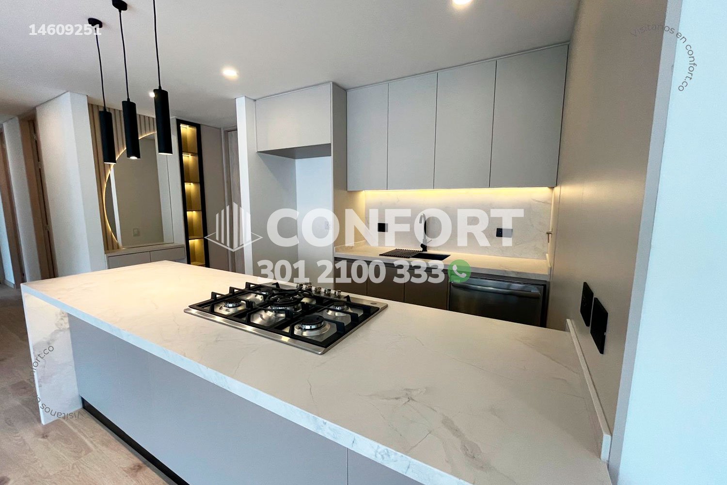 146-09-251 Inmobiliaria en Medellín arrienda apartamento ubicado en el sector de Altos del Poblado. Cuenta con un área de 108mt2 distribuidos en sala comedor, cocina semi integral con barra americana, zona de ropas, balcón con zona bbq, 3 habitaciones, la principal de ellas con baño privado y vestier, además 2 baños sociales, 2 parqueaderos y cuarto útil. Ubicado en unidad residencial con seguridad privada 24/7 y zonas comunes como piscinas para niños y adultos, turco, sauna, salón social, gimnasio y parque infantil, a su alrededor podemos encontrar Supermercado Oxxo, parroquia Marianito y túnel de Oriente, con vías de acceso por la avenida Las Palmas, transversal superior y gran variedad de transporte público. CONFORT GESTORES INMOBILIARIOS – Arriendo en El Poblado