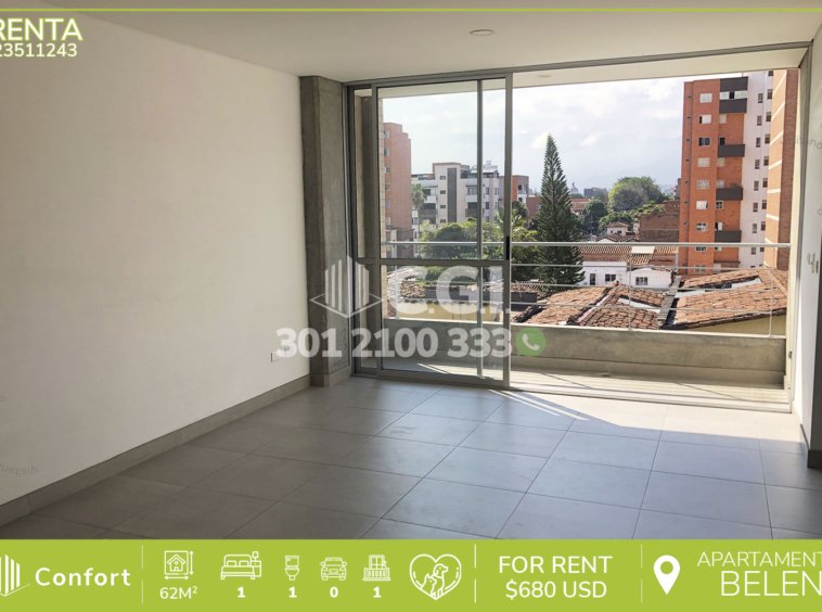 235-11-245 Inmobiliaria en Medellín arrienda apartamento ubicado en el sector de Belén en Medellín, cuenta con un área de 62 mts2 distribuidos en sala comedor, cocina semi integral, balcón, zona de ropas, 1 habitaciones, 2 closet, 1 baño social. Ubicado en unidad cerrada que cuenta con seguridad privada 24/7  y zonas comunes tales como shut de basuras y ascensor, a su alrededor podemos encontrar plazoleta Villa del Aburra, centro comercial Los Molinos y parque de Belen, con vías de acceso por avenida 33, Carrera 80, calle 30 y gran variedad de rutas de transporte público. CONFORT GESTORES INMOBILIARIOS – Arriendo en Medellín