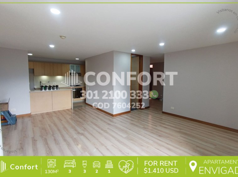 76-04-252 Inmobiliaria en Medellín arrienda apartamento ubicado en excelente sector de Benedictinos en Envigado, cuenta con un área de 130mt2 distribuidos en sala comedor espaciosa, cocina integral moderna, zona de ropas, 3 habitaciones de excelente tamaño, la habitación principal cuenta con vestier y baño privado, adicional podemos encontrar 2 años sociales, clóset de linos, área de estudio, gran terraza descubierta, amplio balcón con agradable vista, 2 parqueaderos y cuarto útil. Ubicado en urbanización con seguridad privada 24/7 y zonas comunes como piscinas, salón social, parque infantil, placa polideportiva y zona pet, a su alrededor podemos encontrar el colegio Benedictinos y Mall distrito Avignon, con vías de acceso por la avenida El Poblado, transversal intermedia y gran variedad de rutas de transporte público. CONFORT GESTORES INMOBILIARIOS – Arriendo en Envigado