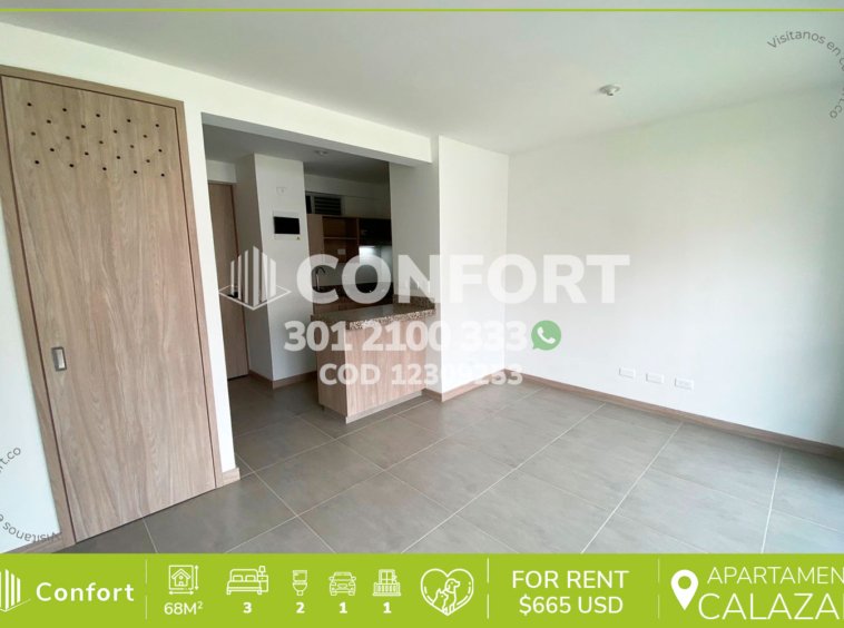 123-09-253 Inmobiliaria en Medellín arrienda Apartamento en el sector de Calasanz sector Blanquizal. Cuenta con un aérea de 65mt2 distribuidos en 3 habitaciones, la principal de ellas con baño privado, además 1 baño social, sala comedor muy amplia, cocina integral, zona de lavado, balcón y parqueadero privado. Ubicado en unidad residencial con seguridad 24/7 y zonas comunes como picina, cancha polideportiva, parque infantil, zona para mascota, y salón social. A su alrededor podemos enontrar mall Santana- parroquia Emaus , colegio la Piedad, con vías de acceso por avenida 80 y calle 50. CONFORT GESTORES INMOBILIARIO – Arriendo en Medellín