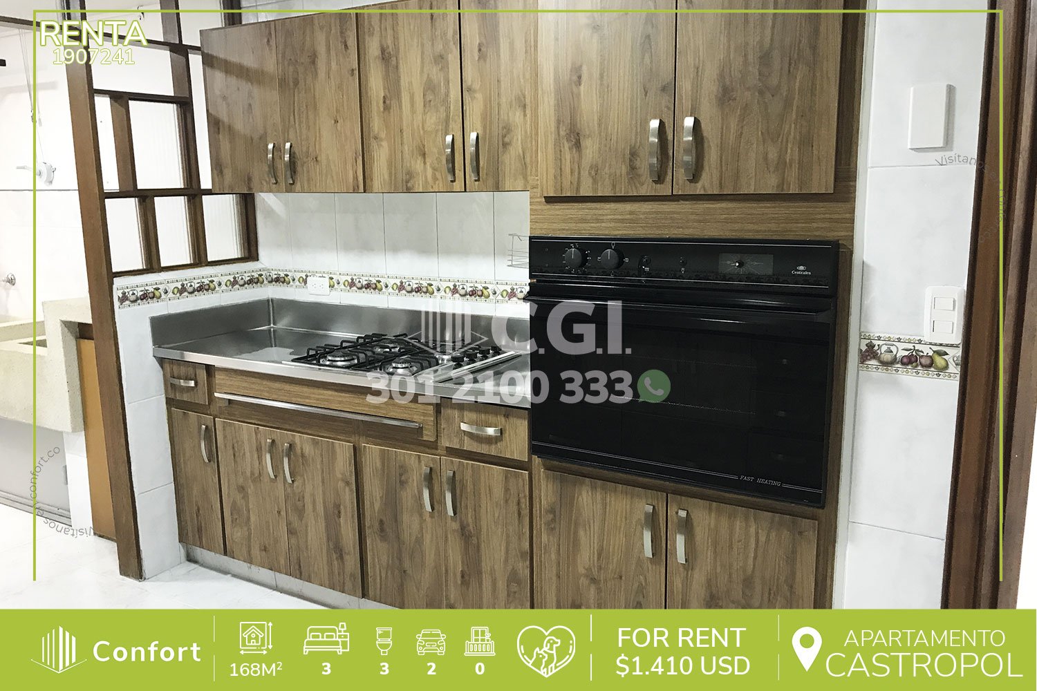 19-07-241 apartamento disponible para la renta ubicado en el tranquilo sector de Castropol en El Poblado, cuenta con 168mt2 distribuidos en sala comedor de muy buen espacio e iluminada, cocina semi integral, zona de ropas, sala de estudio, biblioteca, sala de star, 3 habitaciones cada una con su respectivo clóset y una de ellas con baño privado, 2 baños sociales, habitación de servicio con su respectivo baño, 2 parqueaderos y cuarto útil, con vigilancia 24/7 además de zonas verdes y cancha de fútbol. A su alrededor podemos encontrar el parque de El Poblado, Carulla, parque Lleras, rutas de acceso por avenida El Poblado, avenida Las Palmas y gran variedad de rutas de transporte público. CONFORT GESTORES INMOBILIARIOS – Arriendo en Castropol