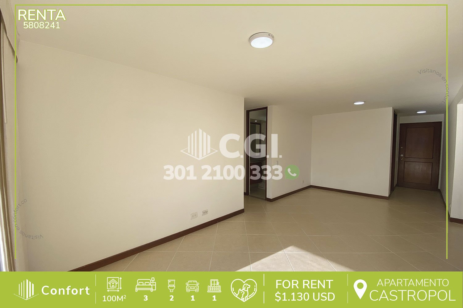 58-08-241 Inmobiliaria en Medellín arrienda moderno apartamento ubicado en tranquilo sector de Castropol en El Poblado, cuenta con 100mt2 distribuidos en sala comedor de muy buen espacio, balcón con vista panorámica, sala de estudio, cocina integral, 3 habitaciones cada una con su respectivo clóset, baño privado, baño social, habitación de servicio con su respectivo baño privado y parqueadero. Ubicado en edificio con seguridad privada 24/7 y con zonas comunes como piscina para niños y adultos, gimnasio, salón social, parque infantil, placa polideportiva y turco, donde a su alrededor podemos encontrar Mall Palmas Avenue, Carulla y Parque de El Poblado, con rutas de acceso por avenida El Poblado, avenida Las Vegas y amplia variedad de rutas de transporte público. CONFORT GESTORES INMOBILIARIOS – Arriendo en El Poblado