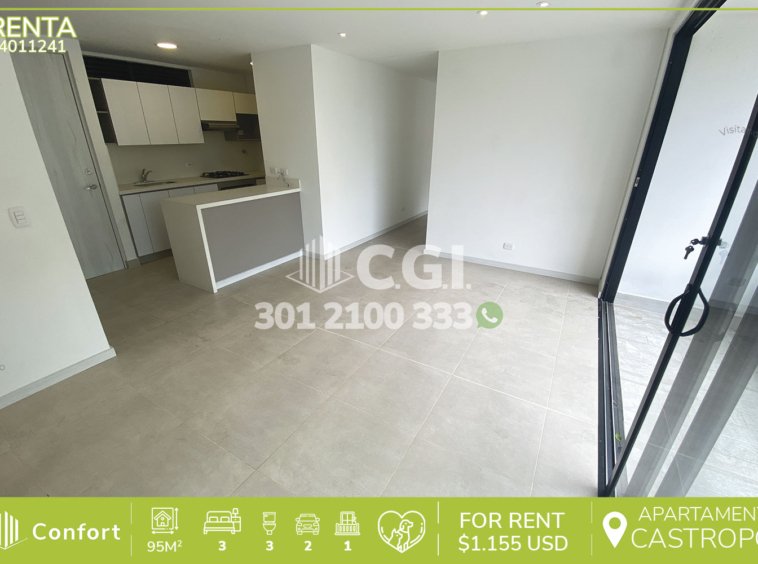 40-11-241 Inmobiliaria en Medellín renta apartamento ubicado en el sector de Castropol en El poblado, cuenta con un área de 95 mts2 distribuidos en sala comedor, cocina integral, balcón, zona de ropas,3 habitaciones, una de ellas con baño privado y vestier, 2 closets, 2 baños sociales, 2 parqueaderos y cuarto útil. Ubicado en unidad cerrada que cuenta con seguridad privada 24/7 y zonas comunes tales como terraza, salón social, zona BBQ ,gimnasio ,piscina y zonas verdes de las cuales algunas todavía se encuentran en construcción , a su alrededor podemos encontrar Parque el Poblado, mall Palma Grande, avenida mall El Poblado con vías de acceso por avenida El Poblado, avenida Las Palmas y gran variedad de rutas de transporte público. CONFORT GESTORES INMOBILIARIOS – Arriendo en El Poblado