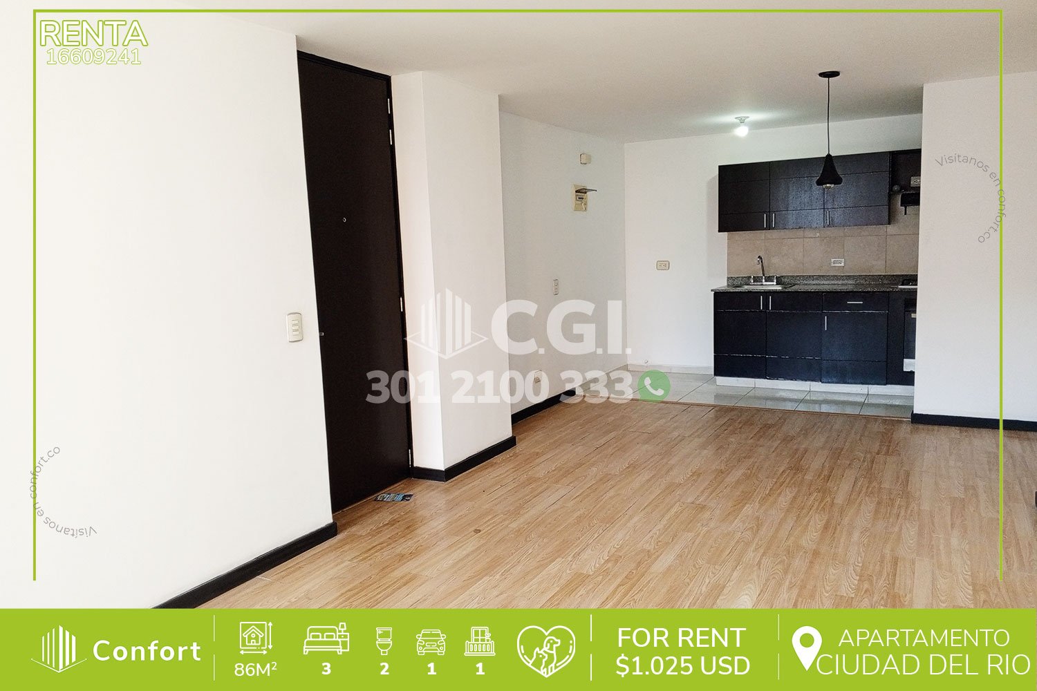 166-09-241 Inmobiliaria en Medellín arrienda apartamento ubicado en el sector de Ciudad del Río en el Poblado, cuenta con un área de 86mt2 distribuidos en sala comedor de muy buen espacio, cocina integral, zona de ropas, 3 habitaciones, una de ellas con baño privado y vestier, además 1 baño social, balcón con ventanal y vista panorámica, sala de estudio y parqueadero. Ubicado en unidad residencial con seguridad 24/7 y con zonas comunes como piscina para niños y adultos, salón social, parque infantil y gimnasio. A su alrededor podemos encontrar Centro Comercial Premium Plaza, estación del metro Industriales, Museo de Arte Moderno de Medellín. Con rutas de acceso por Avenida el Poblado, Avenida Regional, Avenida las Vegas y gran variedad de rutas de transporte público. CONFORT GESTORES INMOBILIARIOS – Arriendo en Medellín
