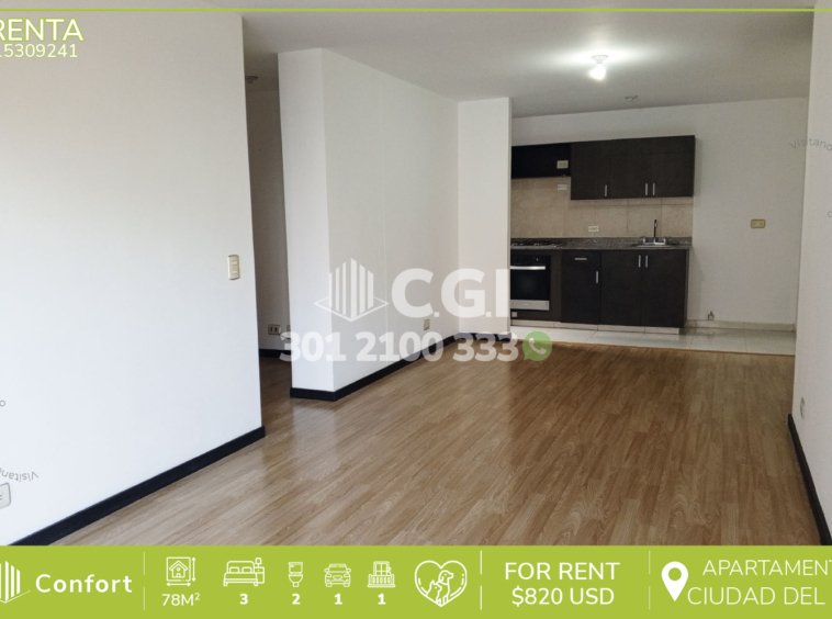 153-09-241 Inmobiliaria en Medellín arrienda apartamento ubicado en tranquilo sector de Ciudad del Río en El Poblado, cuenta con 78mt2 distribuidos en sala comedor de muy buen espacio, cocina semi integral, balcón, zona de ropas, 3 habitaciones, una de ellas con baño privado, vestier y las otras 2 con clóset, baño social y parqueadero. Ubicado en unidad con seguridad privada 24/7 y con zonas comunes como piscina para niños y adultos, salón social, parque infantil, jacuzzi y gimnasio, a su alrededor podemos encontrar el centro comercial Premium Plaza, estación del metro Industriales y el Museo de Arte de Medellín, con rutas de acceso por las avenidas El Poblado, regional y Las Vegas, además, cuenta con gran variedad de rutas de transporte público. CONFORT GESTORES INMOBILIARIOS – Arriendo en El Poblado