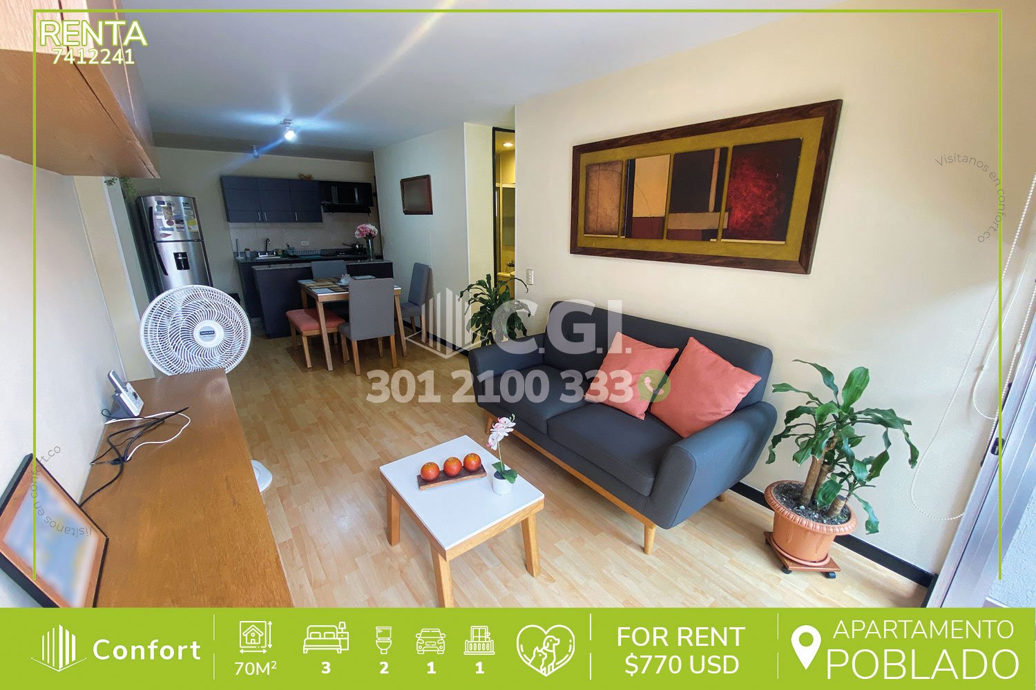 Canon de renta $3.000.000 COP o, $770 USD
