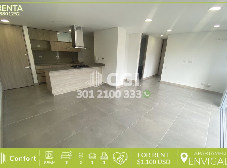 38-01-252 Inmobiliaria en Medellín arrienda apartamento ubicado en el sector de Cumbres en Envigado, cuenta con un área de 85mt2 distribuidos en sala comedor, cocina integral con barra americana, zona de ropas, balcón, 2 habitaciones, una de ellas con baño privado y vestier, la otra con clóset, baño social, parqueadero y cuarto útil. Ubicado en unidad con seguridad privada 24/7 y zonas comunes como piscina para niños y adultos, salón social, gimnasio, parque infantil y zonas verdes, a su alrededor podemos encontrar el centro comercial City Plaza, Mall Terracina Plaza y colegio Cumbres, con vías de acceso por la avenida El Poblado, transversal intermedia y gran variedad de transporte público. CONFORT GESTORES INMOBILIARIOS – Arriendo en Envigado