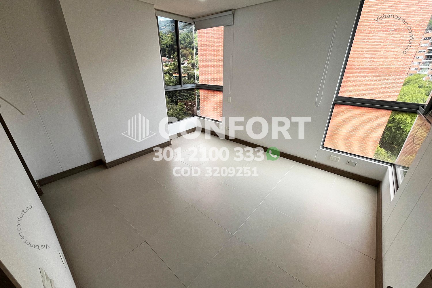 32-09-251 Inmobiliaria en Medellín arrienda apartamento  ubicado en el sector el Esmeraldal en Envigado. Cuenta con un área de 100mt distribuidos en una sala comedor, cocina integral, zona de ropas, 3 habitaciones, una de ellas con baño privado y vestier, 3 closet, baño social, parqueadero doble lineal y cuarto útil. Vigilancia 24/7, además, cuenta con juegos infantiles, cancha, golfito y salón social a su alrededor podemos encontrar el Mall Terracina Plazay City Plaza, con vías de acceso por la Avenida la Vegas y la Transversal Intermedia, con gran variedad de rutas de transporte público. CONFORT GESTORES INMOBILIARIOS – Arriendo en Envigado