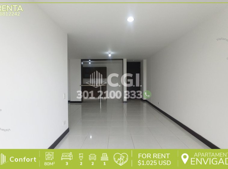 68-12-242 Inmobiliaria en Medellín arrienda apartamento ubicado en el sector de El Esmeraldal en Envigado, cuenta con un área de 80 mts2 distribuidos en sala comedor, cocina integral, balcón, zona de ropas, 3 habitaciones, una de ellas con baño privado y closet, las otras 2 con closet, baño social, 2 parqueaderos y cuarto útil. Ubicado en unidad cerrada que cuenta con seguridad privada 24/7, shut de basuras y zonas comunes tales como piscina, gimnasio, salón social, zona infantil, zona de mascotas y zonas verdes, a su alrededor podemos encontrar parque la Guayacana y Super Bowling, con vías de acceso por transversal intermedia, avenida El Poblado y gran variedad de rutas de transporte público. CONFORT GESTORES INMOBILIARIOS – Arriendo en Envigado