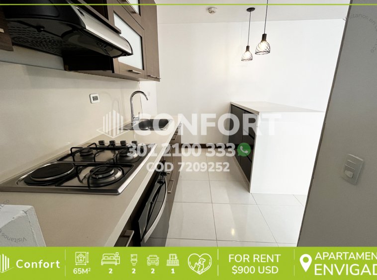72-09-252 Inmobiliaria en Medellín arrienda apartamento ubicado en el sector del Esmeraldal en Envigado. Cuenta con un área de 65m² distribuidos en una sala comedor, cocina integral, zona de ropas, 2 habitaciones, 2 baños, closet, y 2 parqueaderos. Ubicado en unidad residencial con seguridad 24/7 cuenta con zonas comunes distribuidas en, piscina de adultos y niños, salón social, gimnasio, zona de juegos, zonas verdes. A su alrededor podemos encontrar Smarfit, la intermedia Súper mu, tiendas D1, con rutas de acceso con salida loma Esmeraldal y transversal intermedia con gran variedad de transporte público.