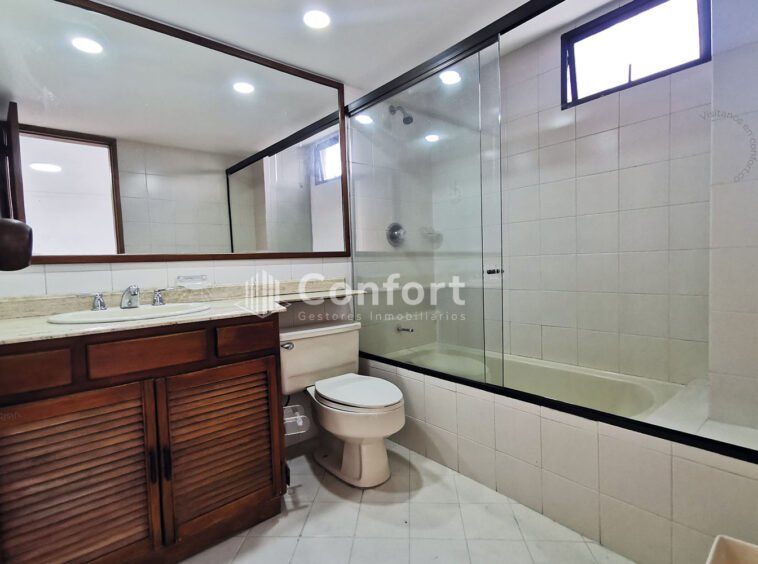10-02-24 Amplio apartamento disponible para la renta en El Poblado, con un area de 148mt2 distribuidos en 3 habitaciones, la principal con vestier y bañera, 1 habitación de servicio con baño, 2 baños sociales, sala de estar y comedor, balcón con vista espectacular, piso brillado, cocina integral, zona de ropas, parqueadero doble paralelo y cuarto útil, la unidad residencial tiene salón social, parqueadero visitantes, amplias zonas verdes y portería 24/7. Su ubicación le brinda cercanía al Mall Verona, Museo Pablo Escobar, La 10 y Transversal Inferior. CONFORT INMOBILIARIA