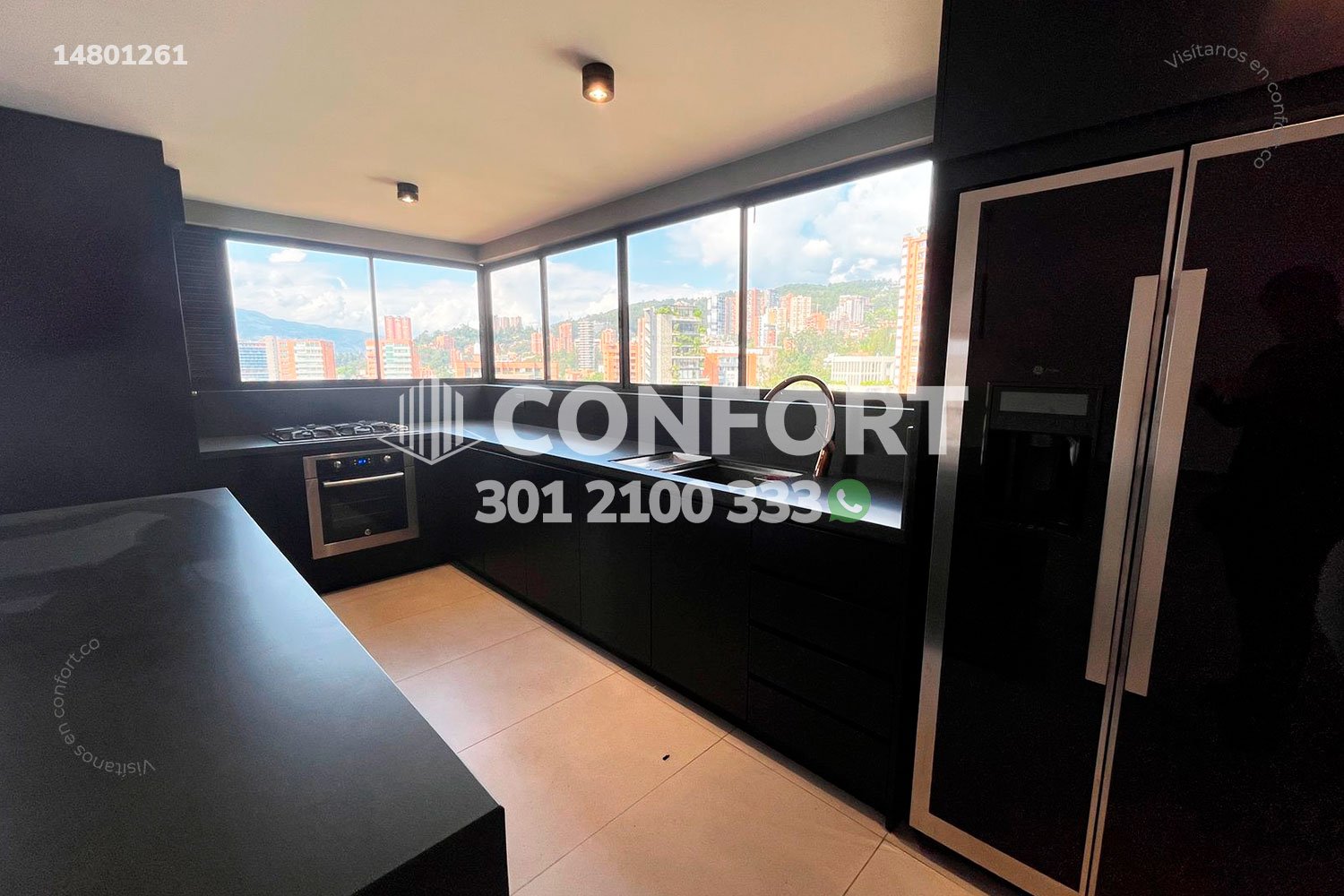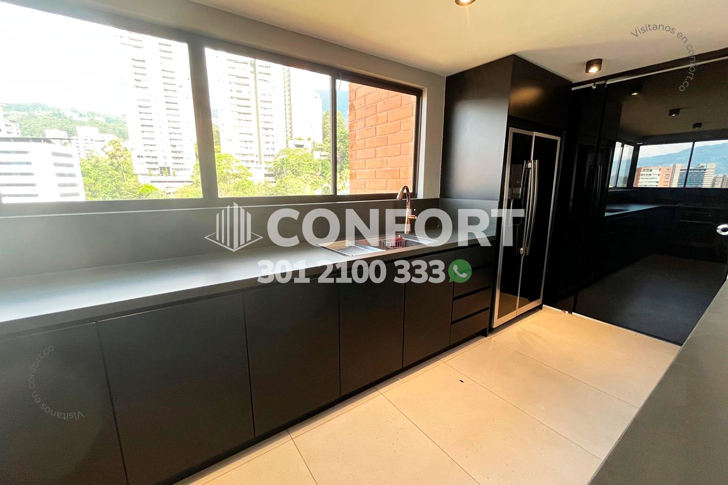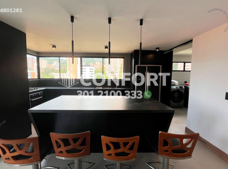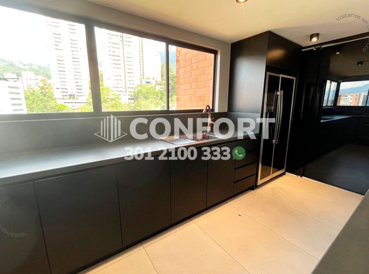 148-01-261 Inmobiliaria en Medellín arrienda moderno apartamento ubicado en el Poblado. cuenta con un área de 190mt2 distribuidos en sala comedor, cocina semi integral con barra aemricana, zona de ropas, habitación de servicio con baño, sala de estudio, 2 baños sociales, 3 habitaciones, la principal de ellas cuenta con baño privado y vestier, además 2 parqueaderos privados y cuarto útil. Ubicado en edificio con seguridad 24/7 zon zonas verdes y parque infantil. A sus alrededores podemos encontrar mall Verona, Ámsterdam plaza, el Tesoro parque comercial. Con vías de acceso por Transversal Inferior, Transversal Superior y gran variedad de rutas de transporte público. CONFORT GESTORES INMOBILIARIOS – Arriendo en el Poblado
