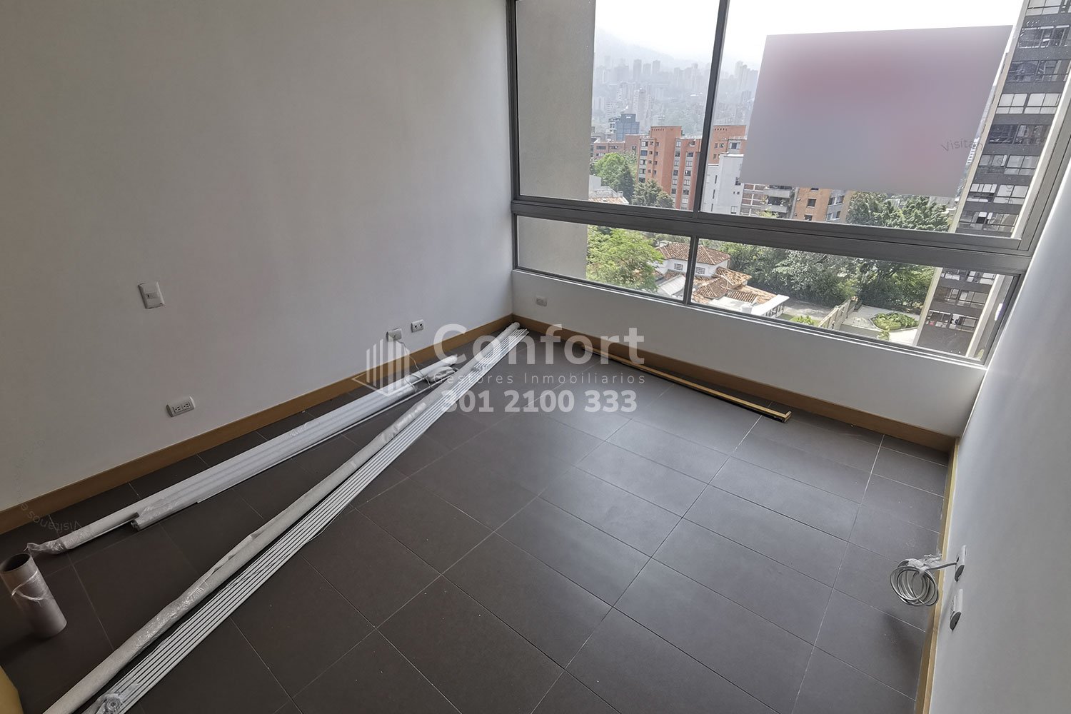 159-02-24 Hermoso apartamento disponible para la renta, con un área de 94mts² ubicado en el corazón del Poblado, sector La Linde, este maravilloso inmueble cuenta 2 habitaciones, cada una con baño privado y la principal con vestier, baño social, amplia sala comedor, estudio, balcón, cocina integral con barra americana, extractor y horno, zona de ropas, parqueadero y cuarto útil. La unidad residencial ofrece piscina para niños y adultos, gimnasio, zona infantil, salón social, amplias zonas verdes y portería 24/7. Por su ubicación tiene cercanía al Parque del Poblado, Parque Lleras, Provenzal, Mall Pallms Avenie, Avenida El Poblado y Avenida Las Palmas. CONFORT INMOBILIARIA