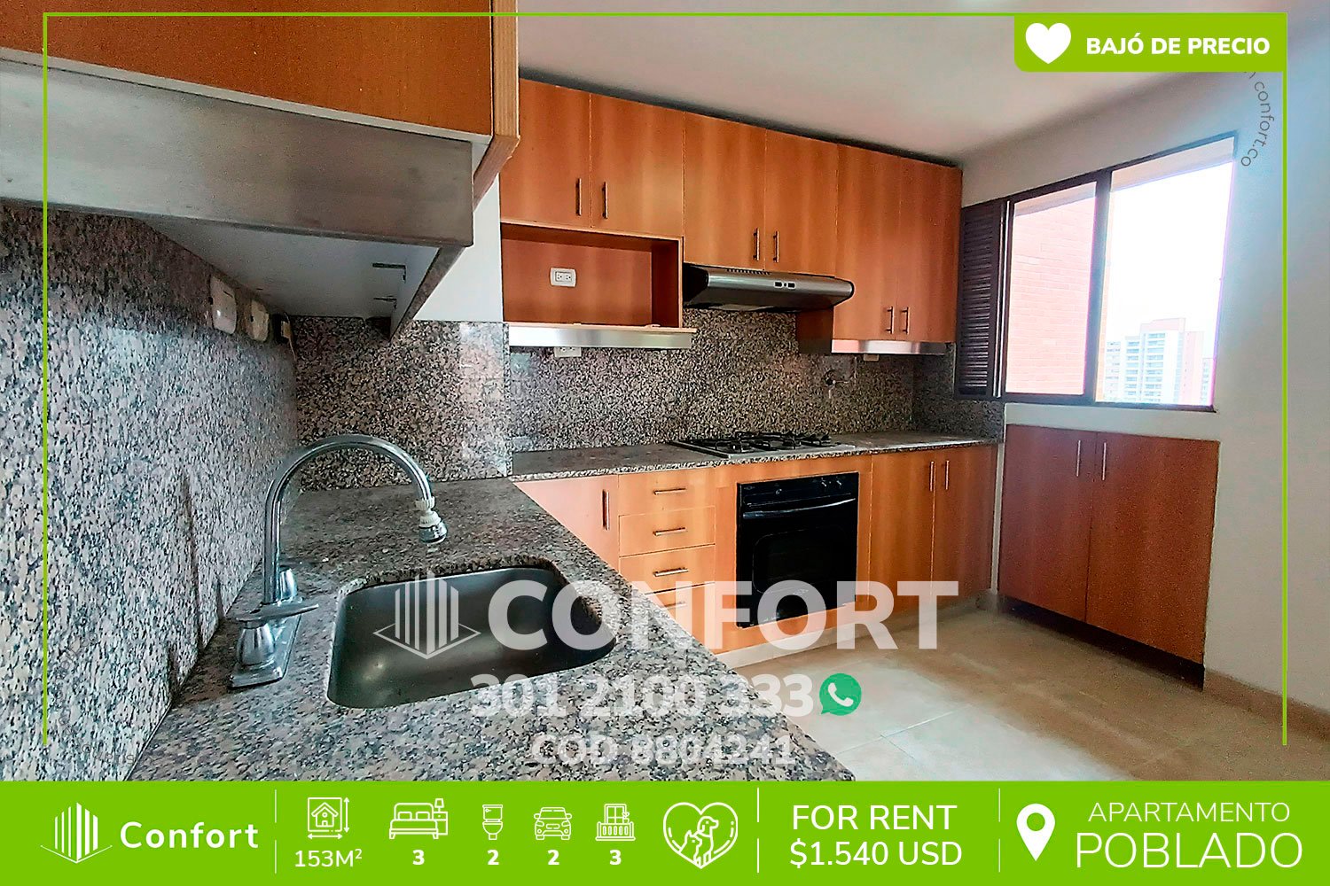 88-04-241 Inmobiliaria en Medellín arrienda apartamento ubicado en el exclusivo sector de los Balsos No. 2 en El Poblado, cuenta con un área de 153mt2 distribuidos en sala comedor espaciosa, cocina integral con buen espacio de almacenamiento, habitación de servicio con baño privado, 3 habitaciones de excelente tamaño cada una con clóset, habitación auxiliar con balcón, habitación principal con balcón, vestier y baño privado, adicional cuenta con sala de televisión u oficina, baño social, amplio balcón en el área social con hermosa vista, 2 parqueaderos y cuarto útil. Ubicado en unidad con seguridad privada 24/7 y con zonas comunes como piscina, salón social, gimnasio, parque infantil y zonas verdes, a su alrededor podemos encontrar el restaurante Piqueo, la Vaquita y colegio Pinares, con vías de la acceso por la transversal inferior, avenida El Poblado y amplia variedad de transporte público. CONFORT GESTORES INMOBILIARIOS – Arriendo en El Poblado