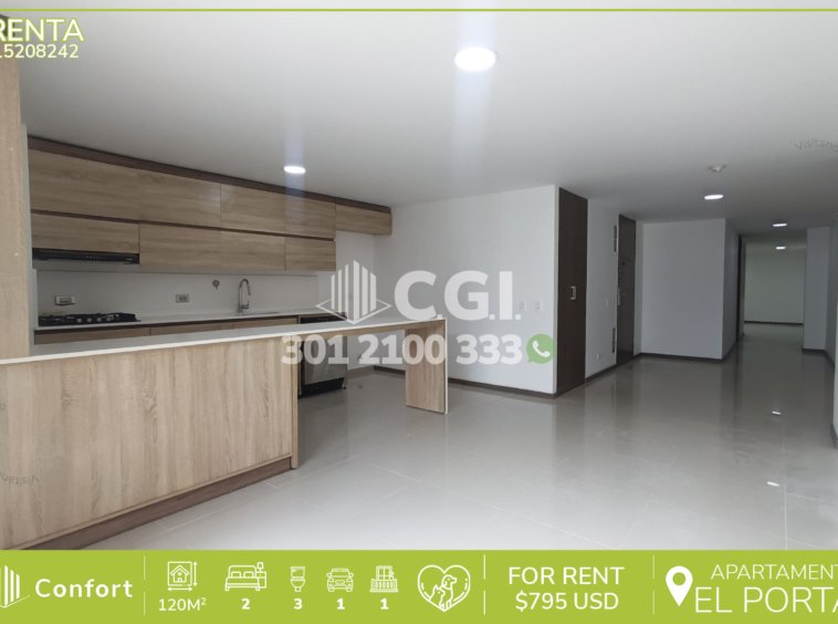 152-08-242 Inmobiliaria en Medellín arrienda apartamento ubicado en excelente sector de El Portal en Envigado, cuenta con un área de 120mt2 distribuidos en sala comedor espaciosa, moderna cocina integral con lavavajillas, zona de ropa, 2 habitaciones de excelente tamaño cada una con su respectivo vestier y baño privado, adicional podemos encontrar área de estudio o sala de estar, baño social, clóset de linos, amplio balcón con vista a la zona residencial y parqueadero. Ubicado en edificio con citófono, donde a su alrededor podemos encontrar Viva Envigado, Ideo centro comercial y parque Envigado, con vías de acceso por avenida Las Vegas, avenida Regional y una amplia variedad de rutas de transporte público. CONFORT GESTORES INMOBILIARIOS – Arriendo en Envigado