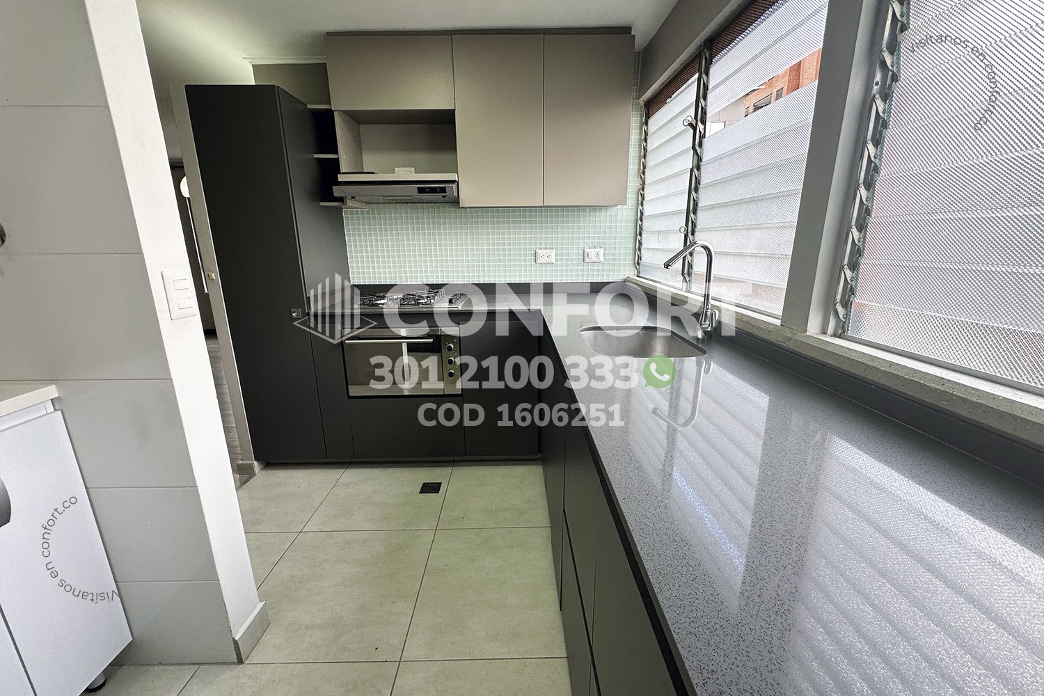 16-06-251 Inmobiliaria en Medellín arrienda apartamento ubicado en el sector de El Tesoro en El Poblado, cuenta con un área de 86mt2 distribuidos en sala comedor, cocina integral, zona de ropas, 3 habitaciones con clóset, una de ellas con baño privado, baño social y parqueadero. Ubicado en unidad con seguridad privada 24/7 y zonas comunes tales como kiosko, zona infantil y zonas verdes, a su alrededor podemos encontrar el Mall Piazza Bella, Mall Ventura, Euro Supermercados, con vías de acceso por la avenida El Poblado, transversal inferior y gran variedad de transporte público. CONFORT GESTORES INMOBILIARIOS – Arriendo en El Poblado