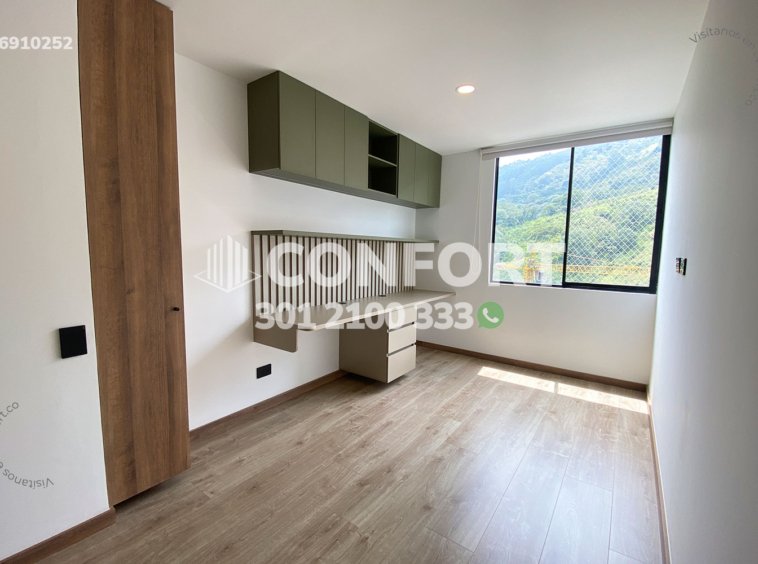 69-10-252 Inmobiliaria en Medellín arrienda apartamento de 86m² ubicado en el sector Envigado, distribuido en sala/comedor, cocina semi-integral, 2 habitaciones con clóset (una de ellas con vestier y baño privado), 1 baño social, sala de estudio/biblioteca, zona de ropas, balcón, parqueadero cubierto y cuarto útil. El apartamento se encuentra en un sector tranquilo con vigilancia 24/7 y cuenta con diversas amenidades, como piscina para niños y adultos, turco, salón social, salón de juegos, zona coworking, gimnasio, zona BBQ, parque infantil, amplias zonas verdes y zona pets. A su alrededor se encuentran el Parque La Heliodora, la Cancha El Dorado y la Cancha El Trianón, con rutas de acceso por la Avenida Las Vegas, Calle 46F Sur y una gran variedad de transporte público.