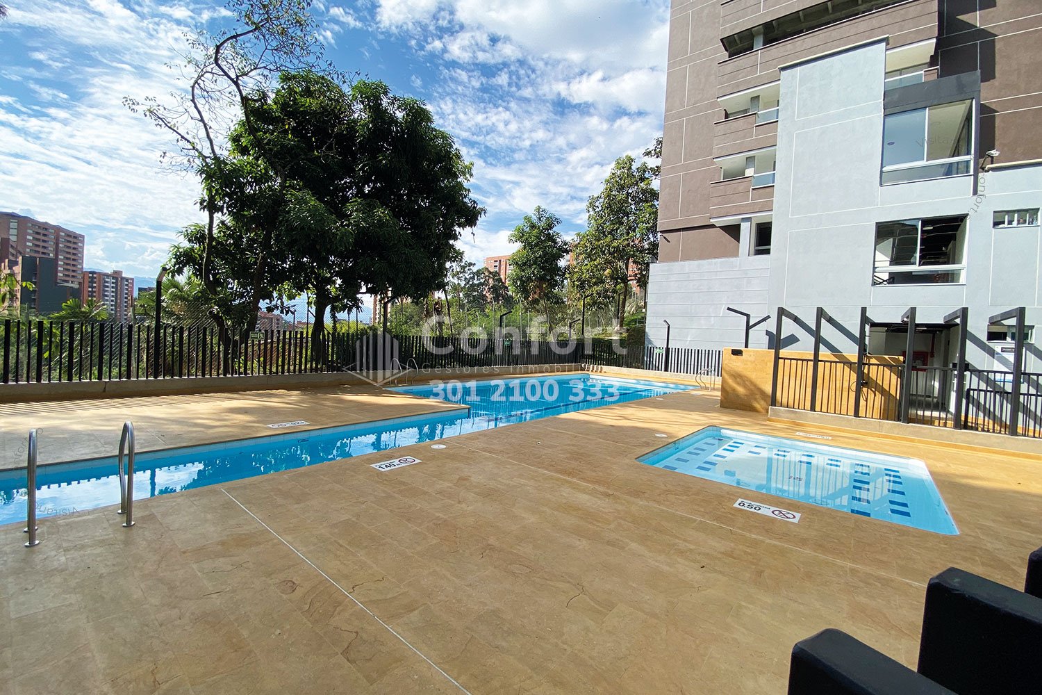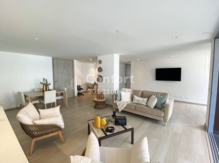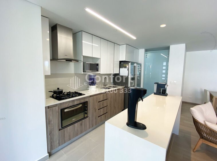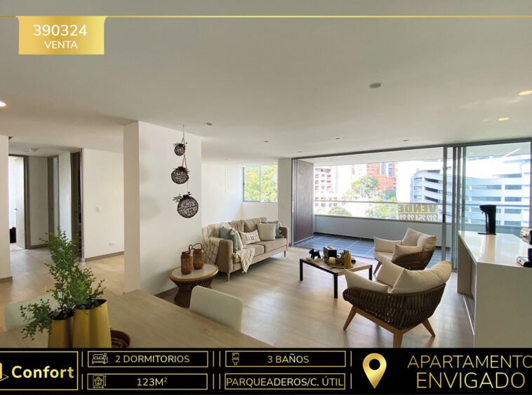 39-03-24 Apartamento disponible para la venta ubicado en el sector Cumbres de Envigado. Cuenta con un área de 123mt2, distribuidos en sala comedor muy amplia y con muy buena iluminación, cocina integral con barra americana espaciosa y agradable que cuenta con muy buenos acabados y full iluminación, zona de ropas y balcón muy amplio con buena vista, 2 habitaciones con baño privados y vestier, además cuenta con 1 baño social, puerta blindada, 2 parqueaderos y cuarto útil. Está ubicado en unidad cerrada con seguridad 24/7, en el que encontramos zonas comunes como piscina, gimnasio, salón social, cancha y juegos infantiles. Con acceso por la transversal Intermedia y cerca al mall Terracina plaza y parque Guayacanes. CONFORT INMOBILIARIA