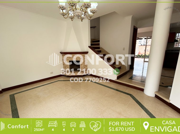 77-09-252 Inmobiliaria en Medellín arrienda casa disponible para la renta ubicada en el sector de la Abadía en Envigado. Cuenta con un área de 250m² distribuidos en sala, sala-comedor, cocina integral, patio, zona de ropas, terraza, sala de televisión, 2 balcones, habitación de servicio con baño, 4 habitaciones (2 de ellas con baño privado), 2 baños sociales y parqueadero privado cubierto. Se encuentra ubicado en unidad residencial con seguridad 24/7, con zonas comunes como gimnasio y parque infantil. A su alrededor podemos encontrar el Parque La Guayacana, Santa Leña Mall, San Lucas y Action Black, la intermedia. Con vías de acceso por la Carrera 28 y Diagonal 29, gran variedad de rutas de transporte público.