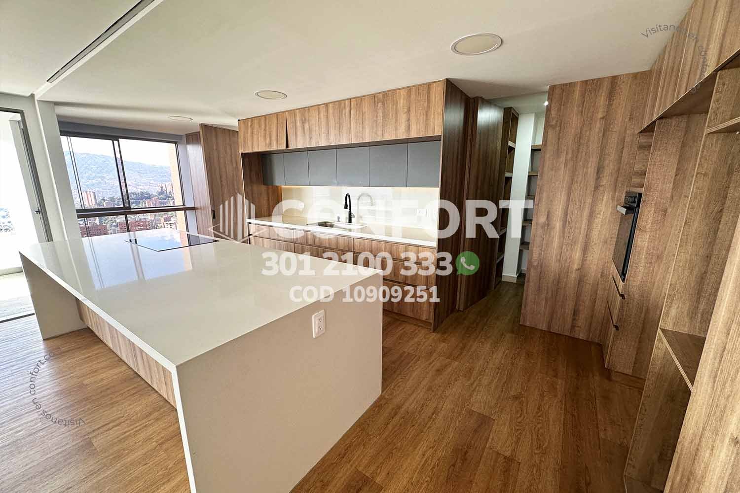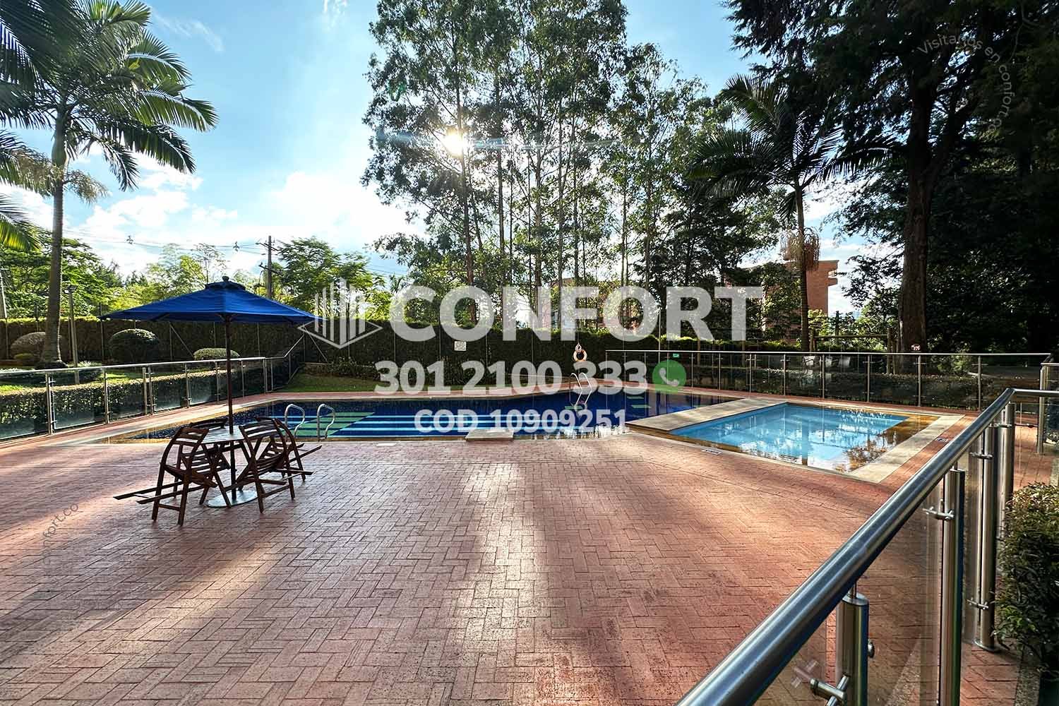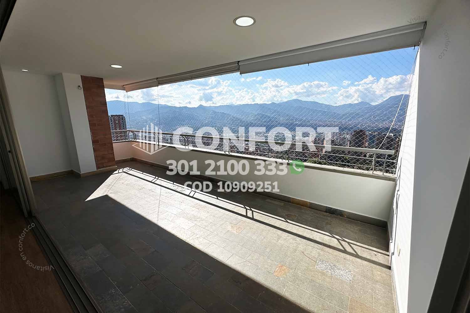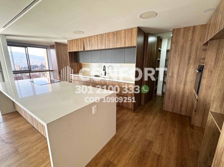 109-09-251 Inmobiliaria en Medellín arrienda apartamento ubicado en el sector de La Calera en El Poblado; cuenta con un área de 200 m² distribuidos en una sala comedor de muy buen espacio, cocina integral en isla, zona de ropas, balcón con una vista panorámica, 3 habitaciones, cada una con su respectivo baño privado y vestier, sala de estudio, baño social, habitación de servicio con su respectivo baño privado, 2 parqueaderos y cuarto útil. Ubicado en unidad con seguridad privada 24/7 y zonas comunes tales como piscina niños y adultos, salón social, gimnasio, parque infantil, cancha polideportiva, a su alrededor podemos encontrar Ámsterdam Plaza, centro comercial El Tesoro y Mall del Este, con vías de acceso por la avenida El Poblado, transversal superior y gran variedad de transporte público. CONFORT GESTORES INMOBILIARIOS – Arriendo en El Poblado
