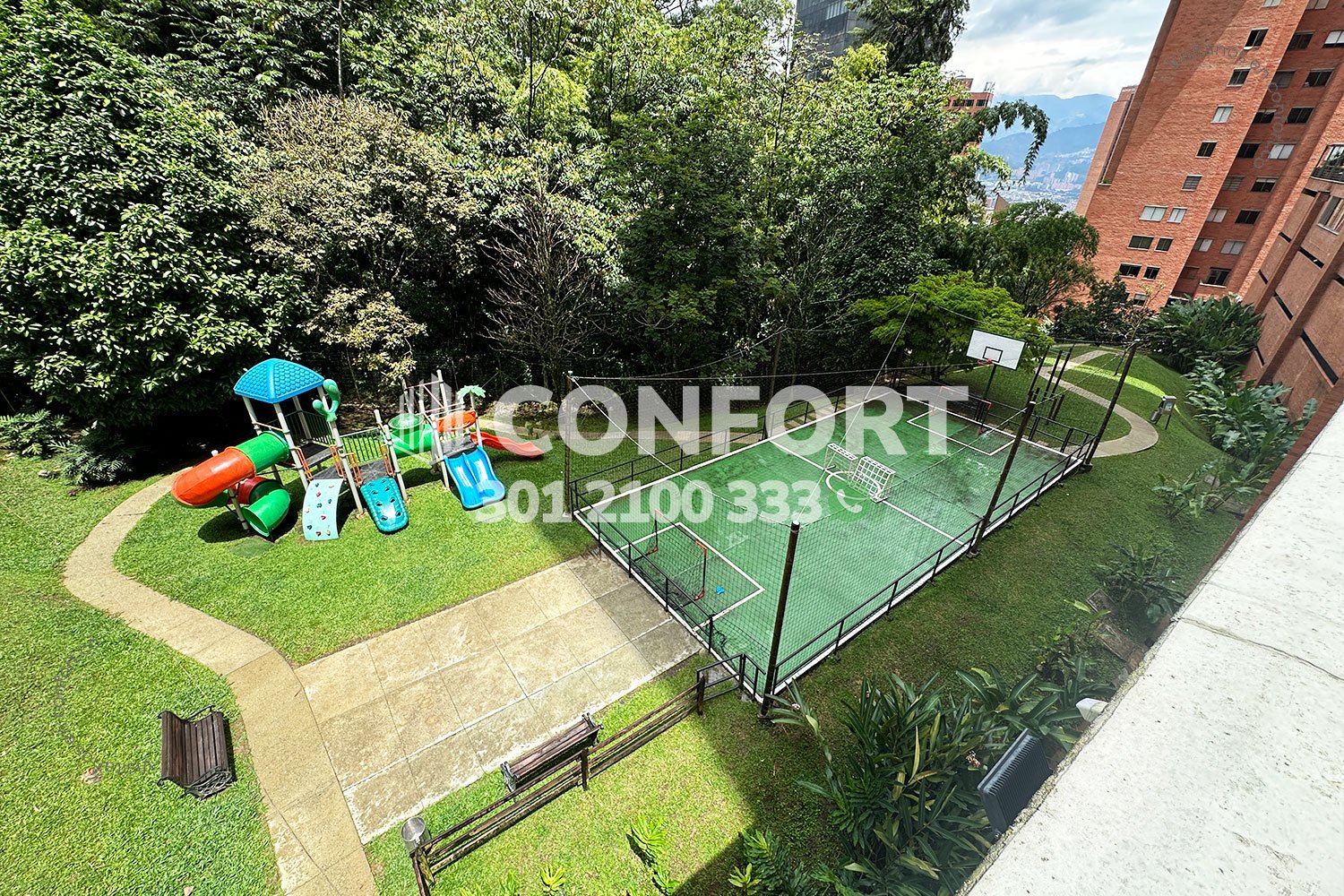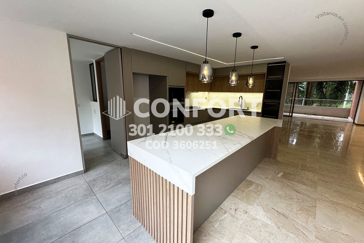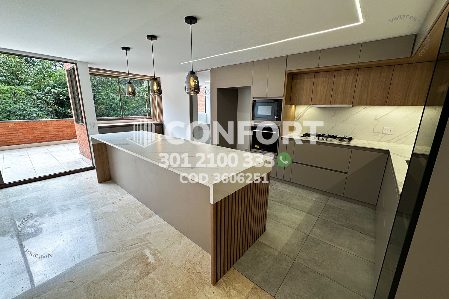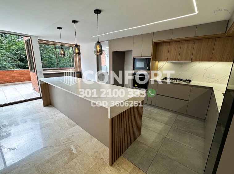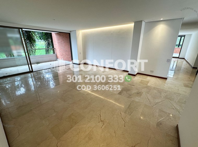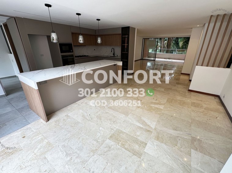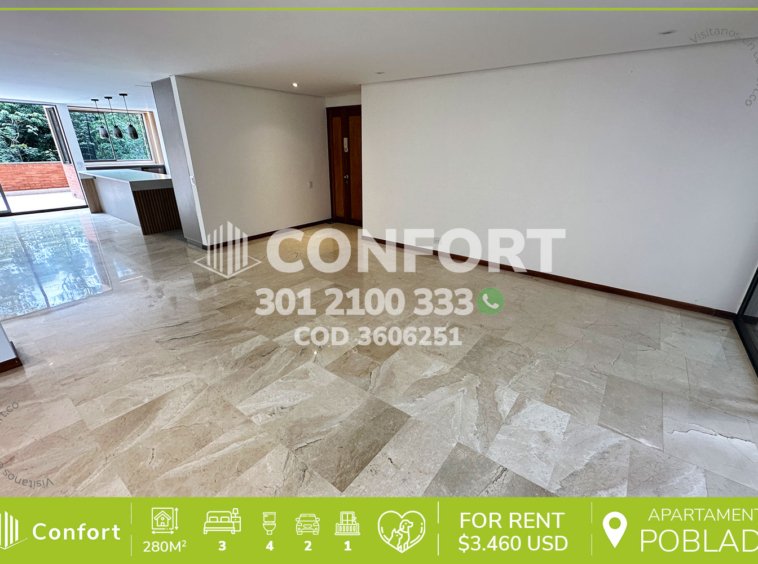 36-06-251 Inmobiliaria en Medellín arrienda apartamento ubicado en el sector de La Calera en El Poblado, cuenta con un área de 280mt2 distribuidos en sala, comedor, cocina semi integral con barra americana, zona de ropas, balcón, terraza con conexión a toda la propiedad, 3 habitaciones cada una con baño privado y vestier, baño social, sala de estudio, habitación de servicio con su respectivo baño privado, 2 parqueaderos y cuarto útil. Ubicado en unidad con seguridad privada 24/7 y zonas comunes tales como piscina para niños y adultos, salón social, gimnasio, parque infantil, placa polideportiva y zonas verdes, a su alrededor podemos encontrar Ámsterdam Plaza, centro comercial El Tesoro y la clínica El Rosario, con vías de acceso por la avenida El Poblado, transversal superior y gran variedad de transporte público. CONFORT GESTORES INMOBILIARIOS – Arriendo en El Poblado