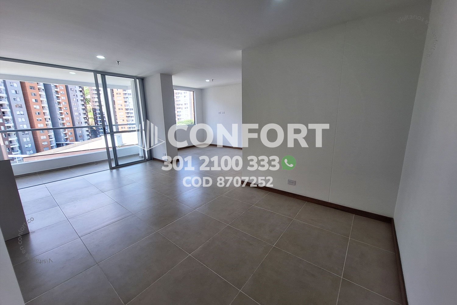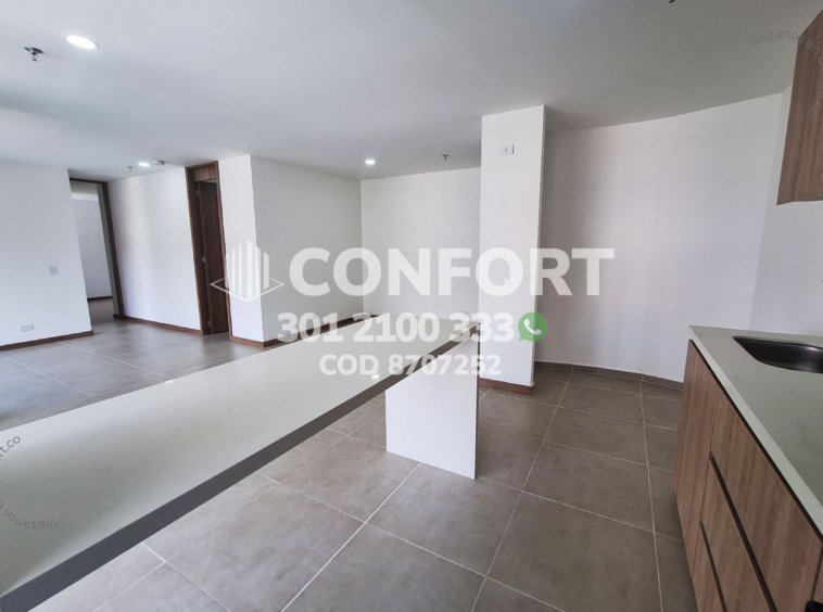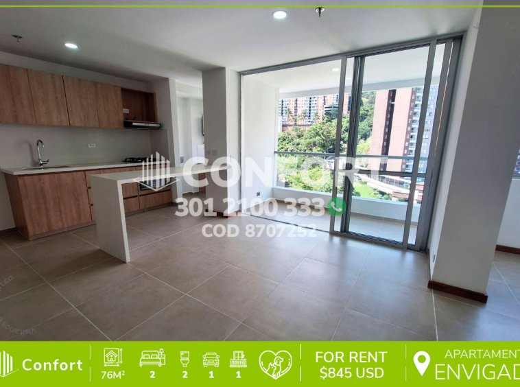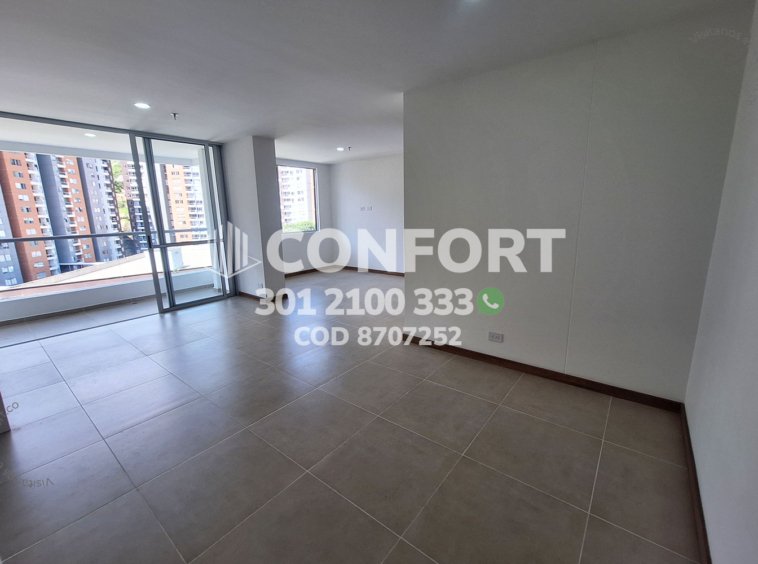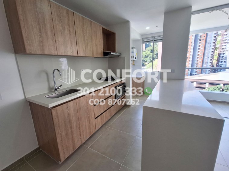 87-07-252 Inmobiliaria en Medellín arrienda apartamento ubicado en el sector de la Cuenca en Envigado, cuenta con un área de 76mt2 distribuidos en sala comedor, cocina integral con barra americana, balcón, zona de lavado, 2 habitaciones, la principal con baño privado y vestier, baño social, sala de estudio, parqueadero y cuarto útil. Ubicado en edificio con seguridad privada 24/7 y zonas comunes como piscina para adultos y niños, parque infantil, cancha de fútbol, salón social y zona de mascotas, a su alrededor podemos encontrar el centro comercial Mayorca, Estadio Polideportivo Sur y vías de acceso por La Loma del Barro, la avenida El Poblado y gran variedad de rutas de transporte público. CONFORT GESTORES INMOBILIARIOS – Arriendo en Envigado