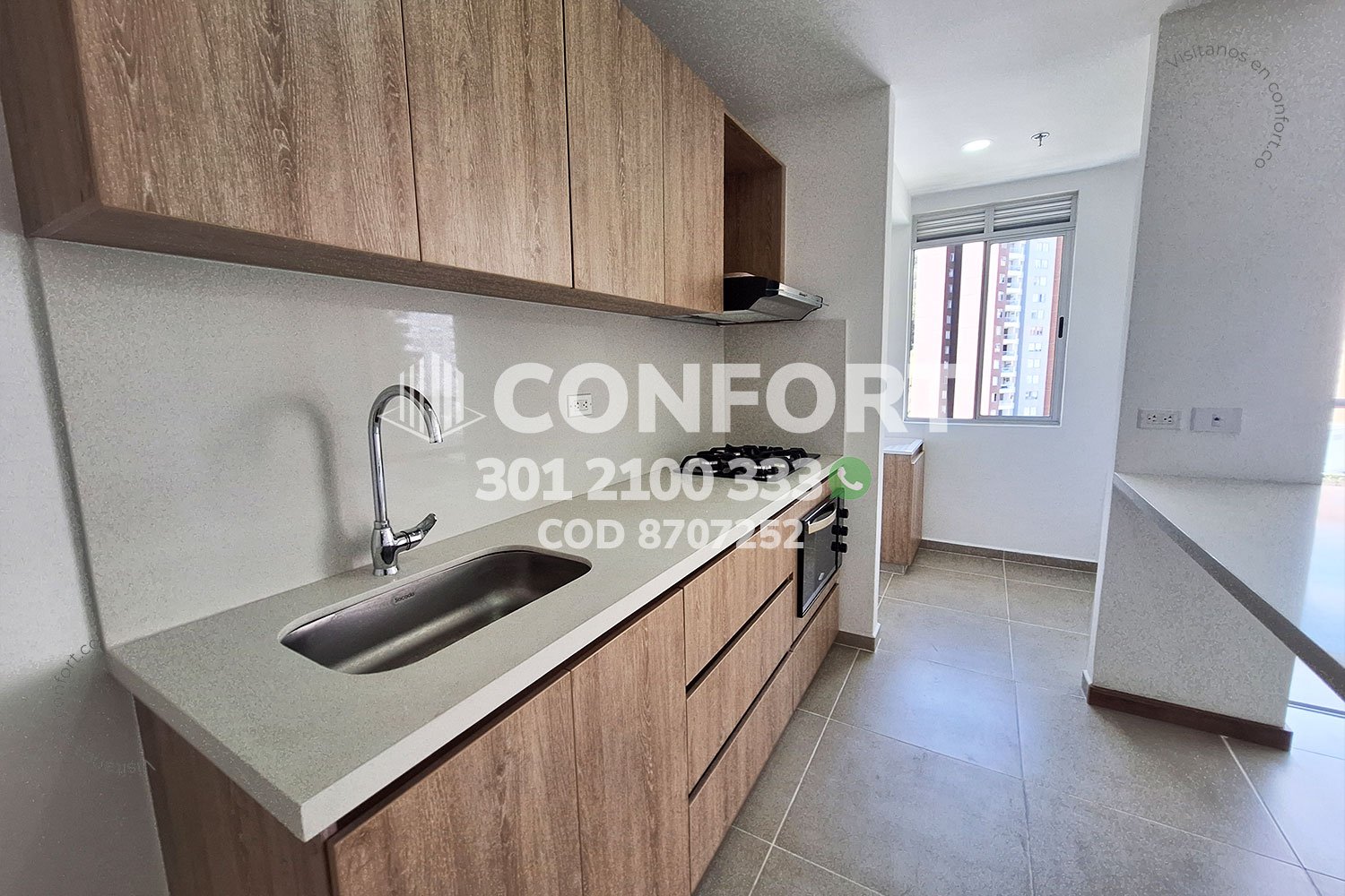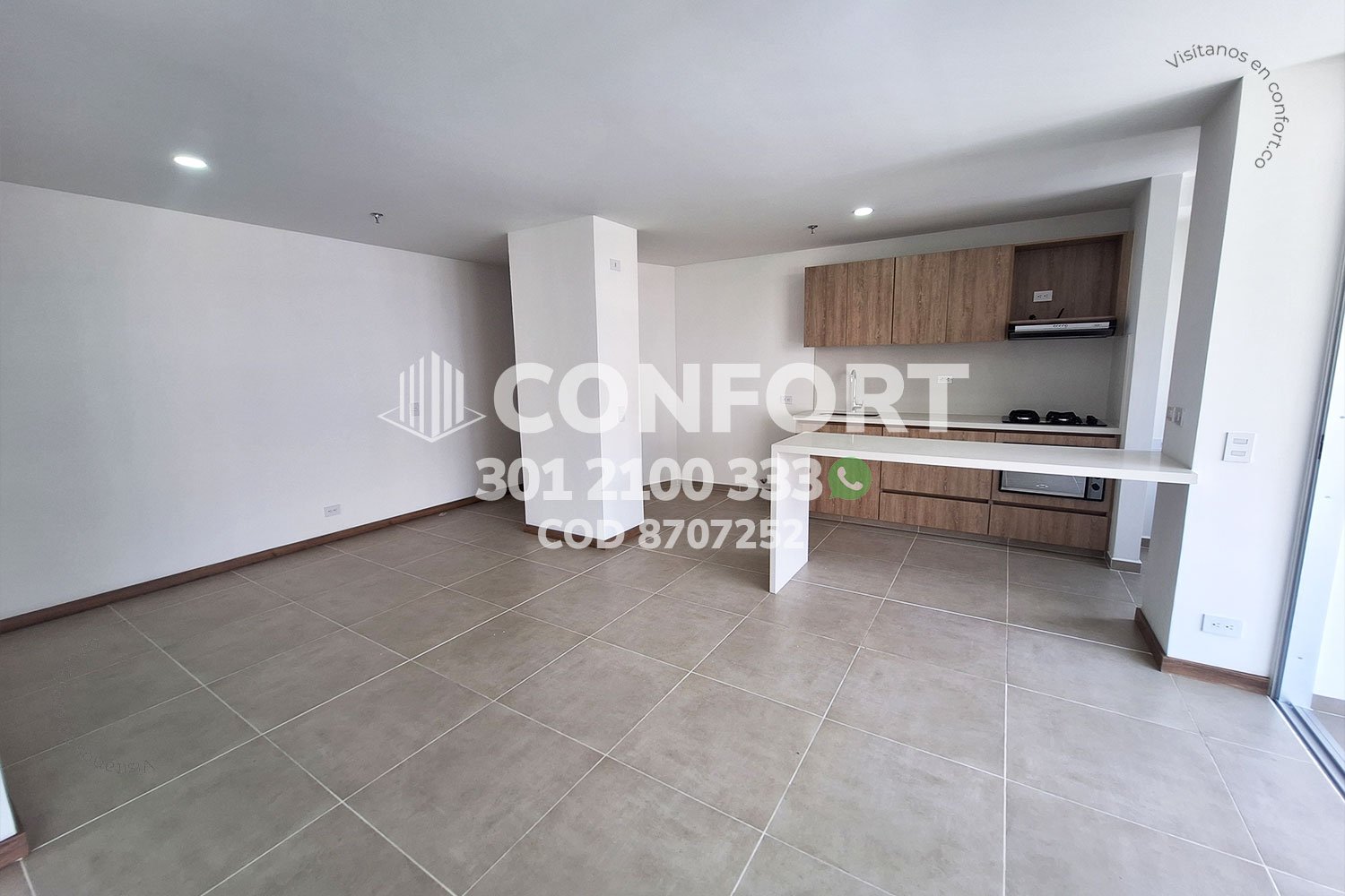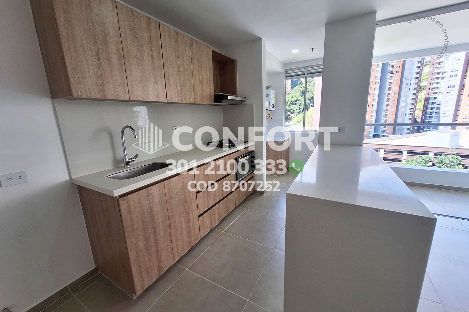 87-07-252 Inmobiliaria en Medellín arrienda apartamento ubicado en el sector de la Cuenca en Envigado, cuenta con un área de 76mt2 distribuidos en sala comedor, cocina integral con barra americana, balcón, zona de lavado, 2 habitaciones, la principal con baño privado y vestier, baño social, sala de estudio, parqueadero y cuarto útil. Ubicado en edificio con seguridad privada 24/7 y zonas comunes como piscina para adultos y niños, parque infantil, cancha de fútbol, salón social y zona de mascotas, a su alrededor podemos encontrar el centro comercial Mayorca, Estadio Polideportivo Sur y vías de acceso por La Loma del Barro, la avenida El Poblado y gran variedad de rutas de transporte público. CONFORT GESTORES INMOBILIARIOS – Arriendo en Envigado