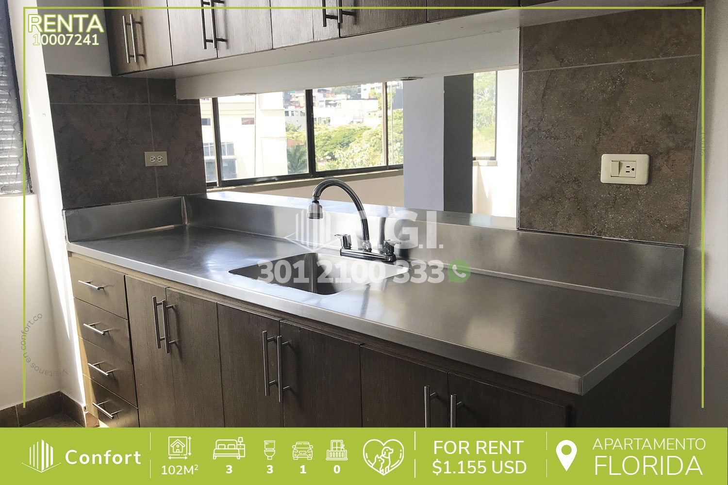 100-07-241 Inmobiliaria en Medellín arrienda apartamento ubicado en tranquilo sector de La Florida en El Poblado, el cual cuenta con 102mt2 distribuidos en sala comedor de muy buen espacio, sala de estudio, cocina integral, zona de ropas, 3 habitaciones, una de ellas con baño privado y vestier, 2 closet,2 baños sociales, parqueadero y cuarto útil, con vigilancia 24/7, además de zonas comunes como parque infantil y zonas verdes. A su alrededor podemos encontrar parque Lleras, Provenza y parque de El Poblado, con rutas de acceso por avenida El Poblado, calle 10 y gran variedad de rutas de transporte público. CONFORT GESTORES INMOBILIARIOS – Arriendo en El Poblado