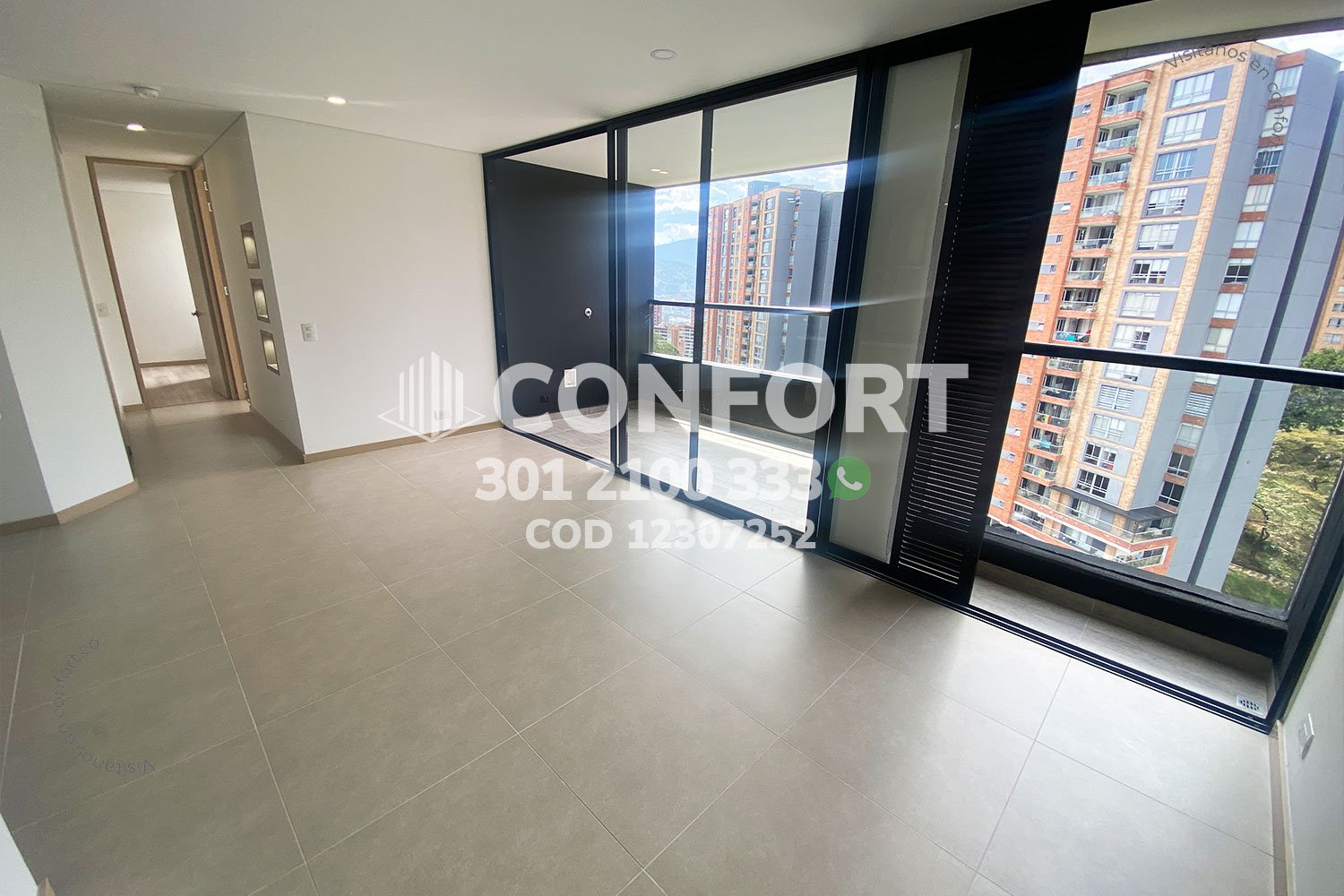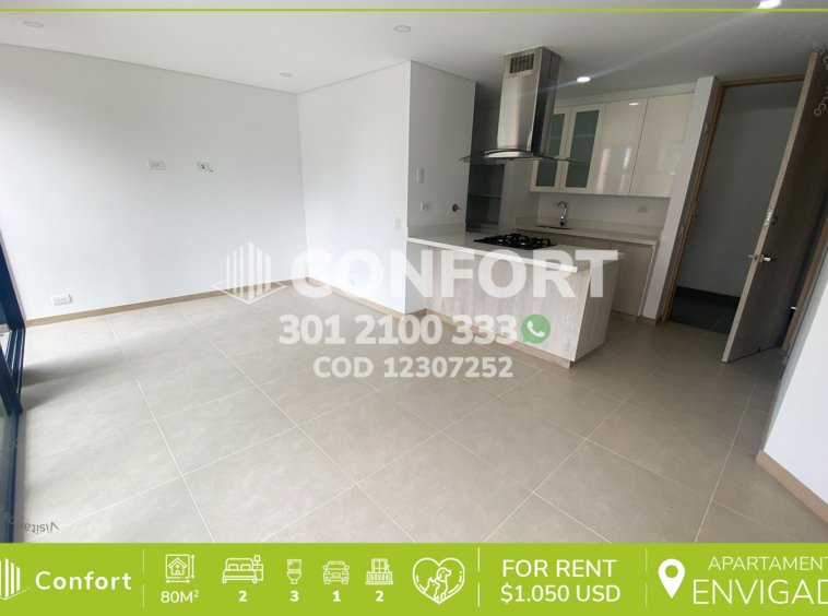 123-07-252 Inmobiliaria en Medellín arrienda apartamento ubicado en el sector de La Loma de Las Brujas en Envigado, cuenta con un área de 80mt2 distribuidos en sala comedor muy amplia, cocina integral moderna, amplio balcón, balcón pequeño, zona de ropas, 2 habitaciones con baño privado y vestier, baño social, parqueadero y cuarto útil. Ubicado en unidad con seguridad privada 24/7 y zonas comunes tales como gimnasio, zona infantil, salón social, placa polideportiva y zonas verdes, a su alrededor podemos encontrar el centro comercial City Plaza, preescolar Mañanita, vías de acceso por la Loma del Escobero, calle 39sur y gran variedad de transporte público. CONFORT GESTORES INMOBILIARIOS – Arriendo en Envigado