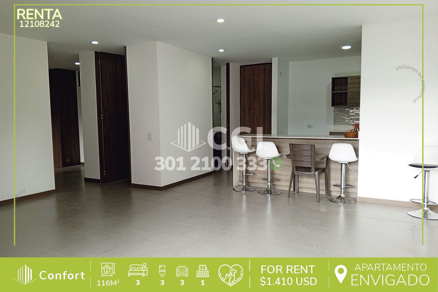 121-08-242 Inmobiliaria en Medellín arrienda hermoso y amplio apartamento ubicado en el sector de la Loma del Escobero en Envigado, cuenta con 116 Mts2 distribuidos en sala comedor de muy buen espacio, balcón con vista panorámica, cocina integral, 3 habitaciones, 2 de ellas con clóset y otra con vestier y baño privado, 2 baños sociales, 3 parqueaderos y zona de ropas. Ubicado en unidad residencial con seguridad 24/7 y zonas comunes como piscinas para niños y adultos, una de ellas climatizada y techada, gimnasio, salón social, parque infantil, turco, sauna, jacuzzi, cancha de fútbol, cancha de squash, mini golf y más. A su alrededor podemos encontrar centro comercial City Plaza. Carulla, Farmatodo, con vías de acceso por avenida el Poblado, avenida las Vegas y Loma del Escobero. CONFORT GESTORES INMOBILIARIOS – Arriendo en Envigado