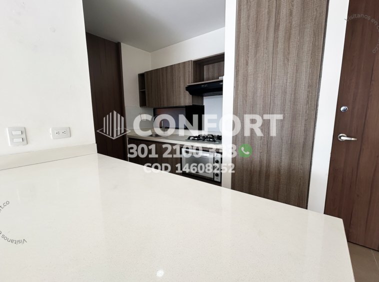146-08-252 Inmobiliaria en Medellín arrienda apartamento ubicado en el sector de La Loma del Escobero en Envigado, cuenta con un área de 62mt2 distribuidos en sala comedor, cocina integral con barra americana, zona de ropas, una habitación con baño privado y vestier, baño social, parqueadero y cuarto útil. Ubicado en edificio con seguridad privada 24/7 y zonas comunes como piscina para adultos y niños, turco, salón social, gimnasio, zona de juegos, cancha de squash, cancha de fútbol, spa y zonas verdes, a su alrededor podemos encontrar el Mall Guadalcanal, centro comercial City Plaza, vías de acceso por la loma El Escobero, Loma de Las Brujas, transversal intermedia y gran variedad de rutas de transporte público. CONFORT GESTORES INMOBILIARIOS – Arriendo en Envigado