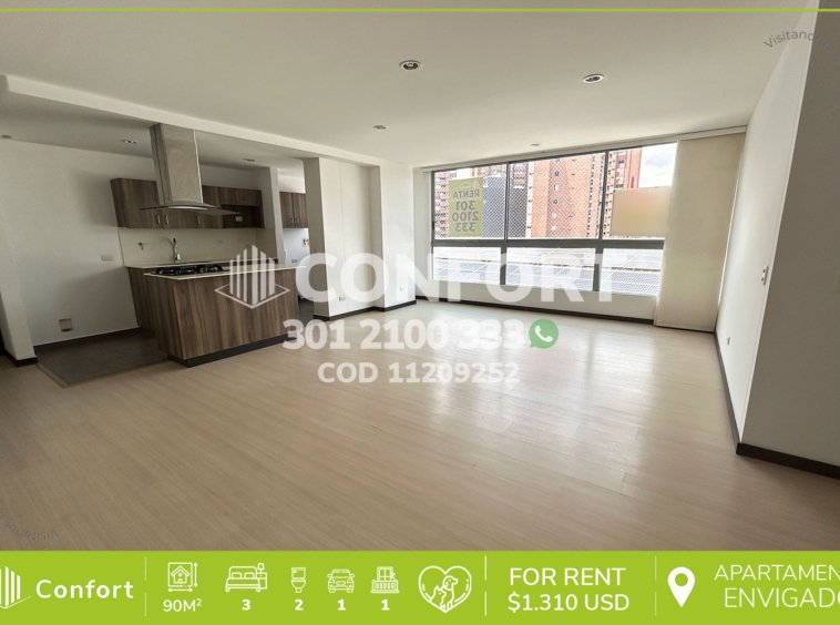112-09-252 Inmobiliaria en Medellín arrienda apartamento ubicado en el sector Loma del Esmeraldal en Envigado. Cuenta con un área de 90 mts distribuidos en sala comedor, cocina, zona de ropas, 3 habitaciones, 1 de ellas con baño privado y vestier , baño social, parqueadero cubierto y cuarto útil. Ubicado en unidad residencial con seguridad 24/7 cuenta con zonas comunes distribuidas en zona húmeda, zonas verdes, salón social, gimnasio. A su alrededor podemos encontrar gimnasio Smarfit, tiendas D1, tiendas Oxxo. Con rutas de acceso por loma Esmeraldal y Transversal intermedia con gran variedad de transporte público. CONFORT GESTORES INMOBILIARIOS – Arriendo en Envigado