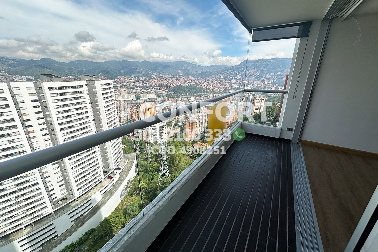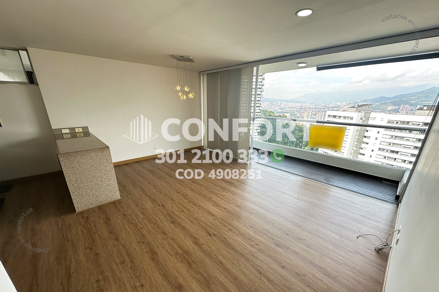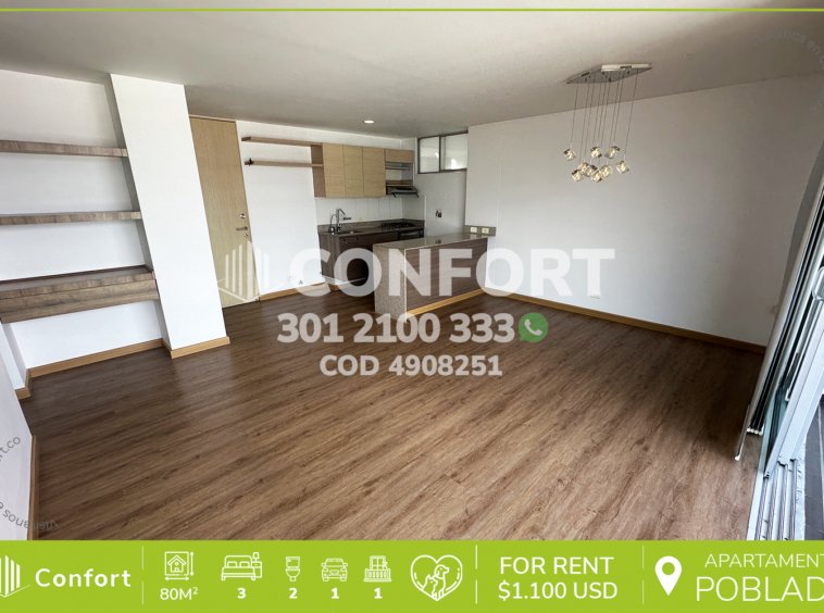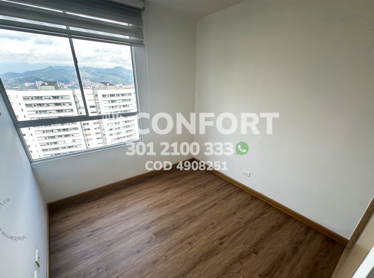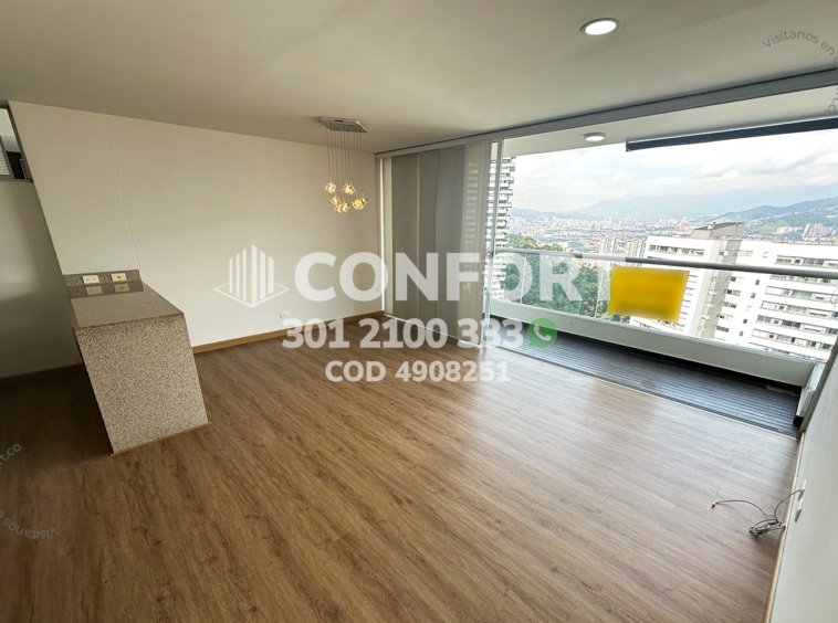49-08-251 Inmobiliaria en Medellín arrienda apartamento ubicado en el sector de La Loma del Indio en El Poblado, cuenta con un área de 80mt2 distribuidos en sala comedor, cocina integral con barra americana, zona de ropas, balcón con vista panorámica, 3 habitaciones, una de ellas con baño privado y vestier, 2 con clóset, baño social, sala de estudio, parqueadero y cuarto útil. Ubicado en edificio con seguridad privada 24/7 y zonas comunes como piscina para adultos y niños, parque infantil, salón social, turco, sauna, gimnasio y zonas verdes, a su alrededor podemos encontrar Mall El Indio, túnel de Oriente y mirador La Isla, con vías de acceso por La Loma del Indio, avenida Las Palmas y gran variedad de rutas de transporte público. CONFORT GESTORES INMOBILIARIOS – Arriendo en El Poblado
