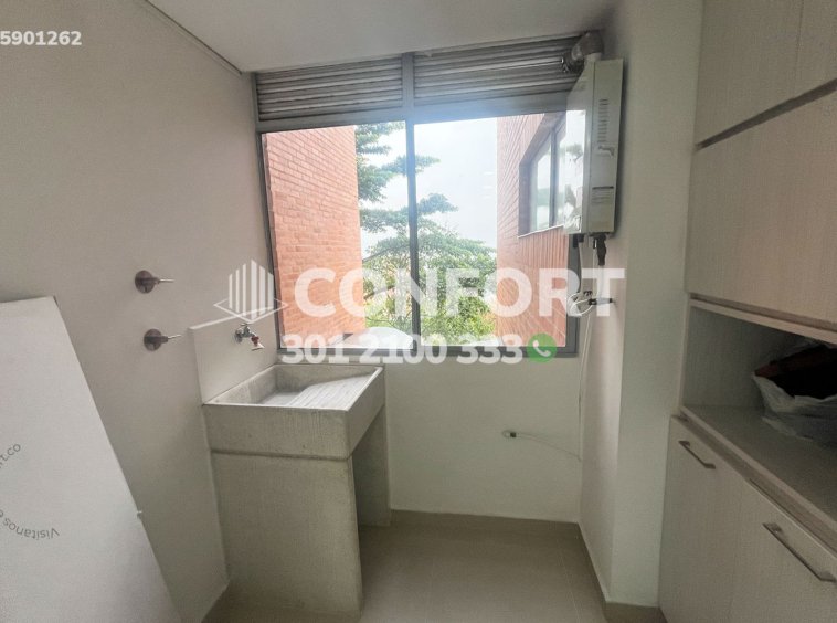 159-01-262 Inmobiliaria en Medellín arrienda apartamento ubicado en el sector de las Brujas en Envigado. Cuenta con un área de 150mt² distribuidos en sala comedor, cocina integral con barra americana tipo isla, zona de ropas, 3 habitaciones, cada una de ellas con baño privado y vestier, baño social, 2 balcones, parqueadero doble lineal y cuarto útil. Ubicado en unidad residencial con seguridad 24/7 con zonas de esparcimiento como piscinas, salón social, gimnasio, parque infantil y zona pet, a su alrededor podemos encontrar el centro comercial City Plaza y el hospital Manuel Uribe Ángel, con vías de acceso por la avenida El Poblado, transversal intermedia y amplia variedad de rutas de transporte público. CONFORT GESTORES INMOBILIARIOS – Arriendo en Envigado