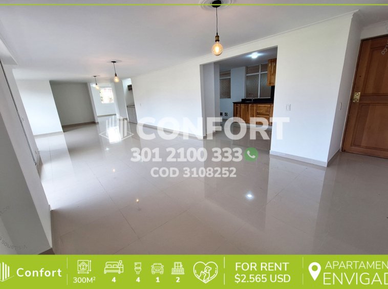 31-08-252 Inmobiliaria en Medellín arrienda apartamento ubicado en el sector de la Loma de las Brujas en Envigado. Cuenta con un área de 300mt² distribuidos en sala comedor, sala de estar, cocina integral, zona de ropas, habitación de servicio con baño, 4 habitaciones, 2 de ellas con baño privado y vestier, 2 baños sociales, 1 parqueaderos cubierto y cuarto útil. Se encuentra ubicada en unidad residencial con seguridad 24/7 y piscina. A su alrededor encontramos centro comercial City Plaza, Parroquias, Supermercados, Gimnasios y más. Con vías de acceso por loma de las Brujas y variedad de rutas transporte público. CONFORT GESTORES INMOBILIARIOS – Arriendo en Envigado