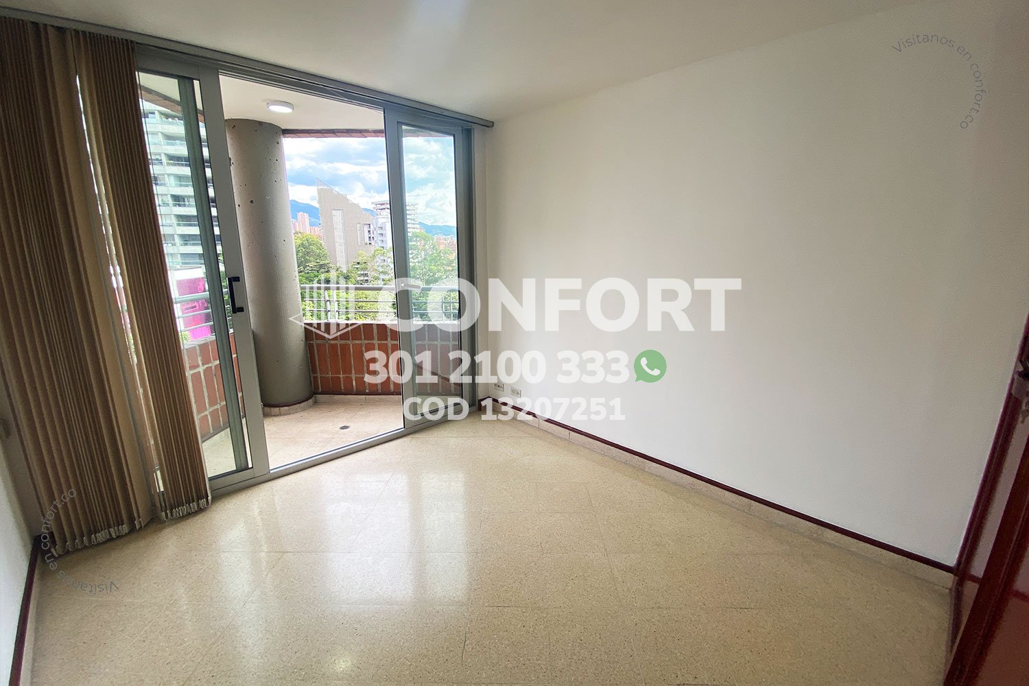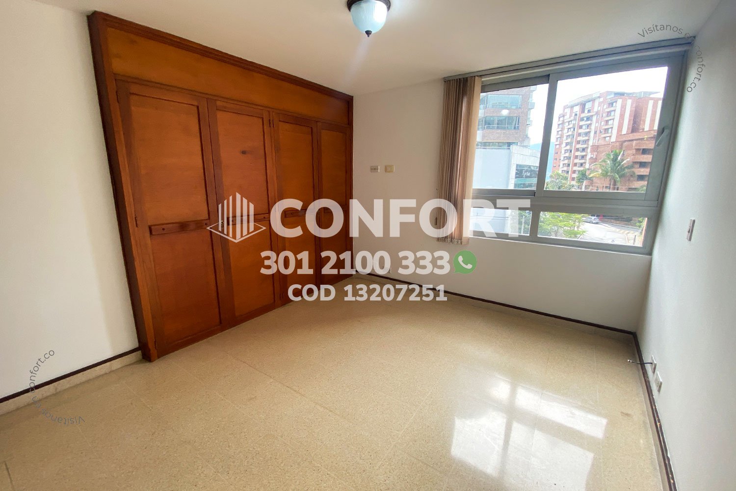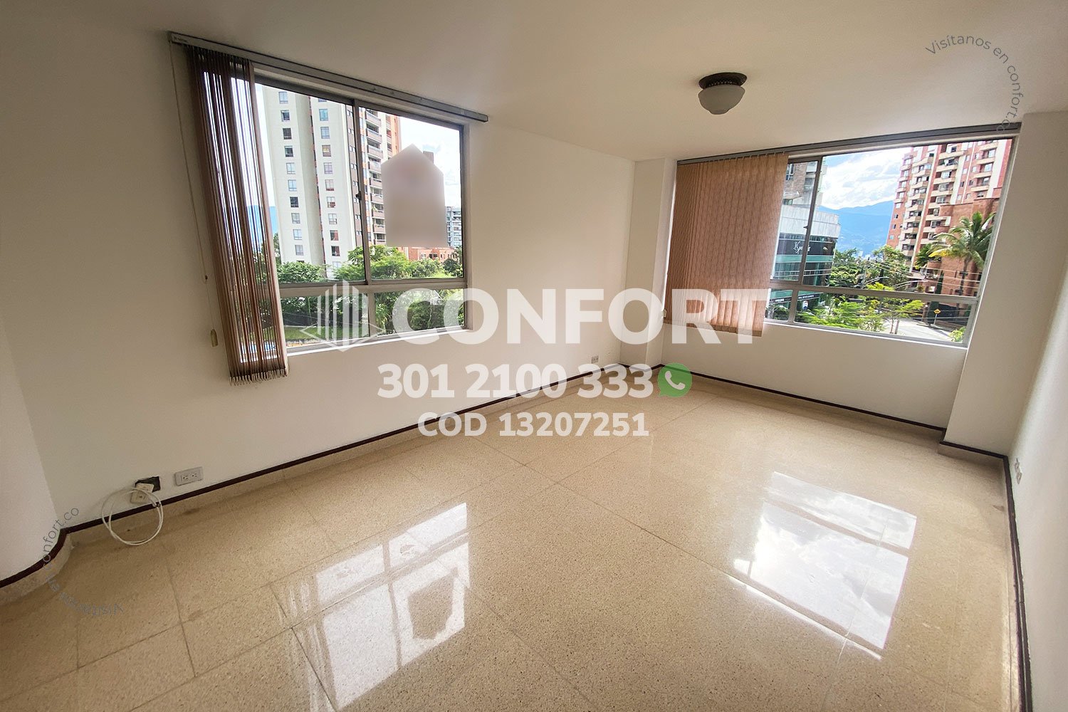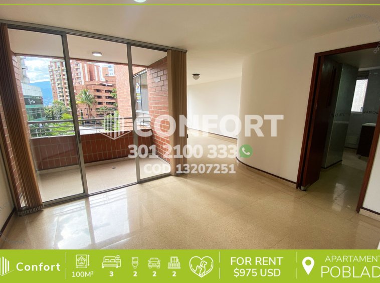 132-07-251 Inmobiliaria en Medellín arrienda apartamento ubicado en el sector de Las Lomas en El Poblado, cuenta con un área de 100mt2 distribuidos en sala, comedor, cocina integral, balcón social, zona de ropas, 3 habitaciones con clóset, una de ellas con balcón, otra con baño privado, habitación de servicio, baño social, 2 parqueaderos y cuarto útil. Ubicado en edificio con seguridad privada 24/7, donde su alrededor podemos encontrar Supermercado Oxxo Las Lomas 2 y Sss Clínica Senses, con vías de acceso por la avenida Las Palmas, transversal intermedia y gran variedad de transporte público. CONFORT GESTORES INMOBILIARIOS – Arriendo en El Poblado