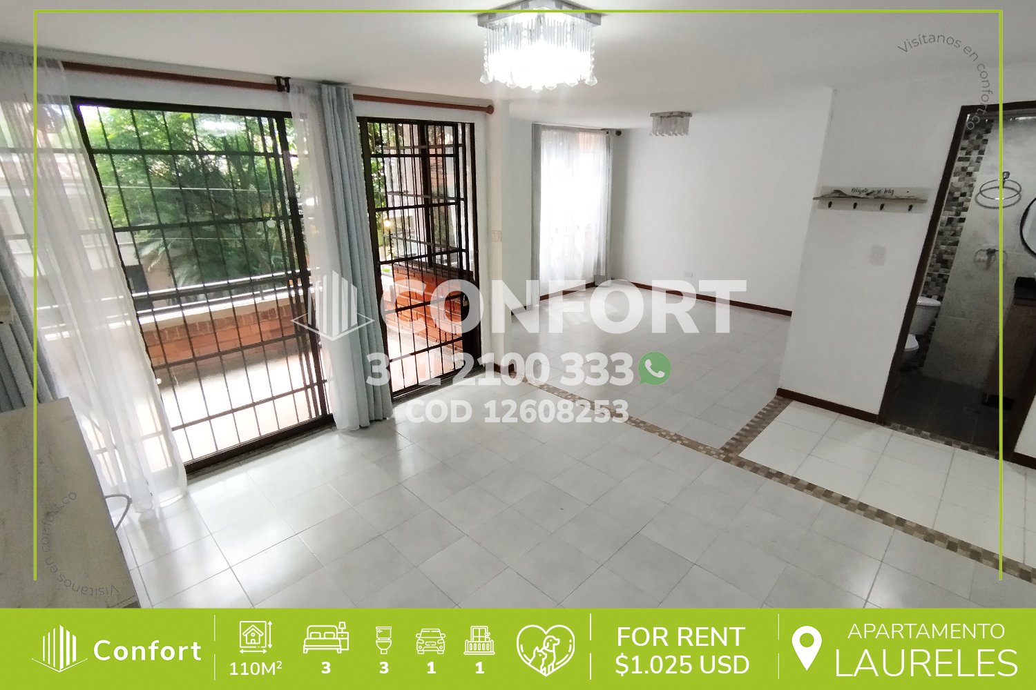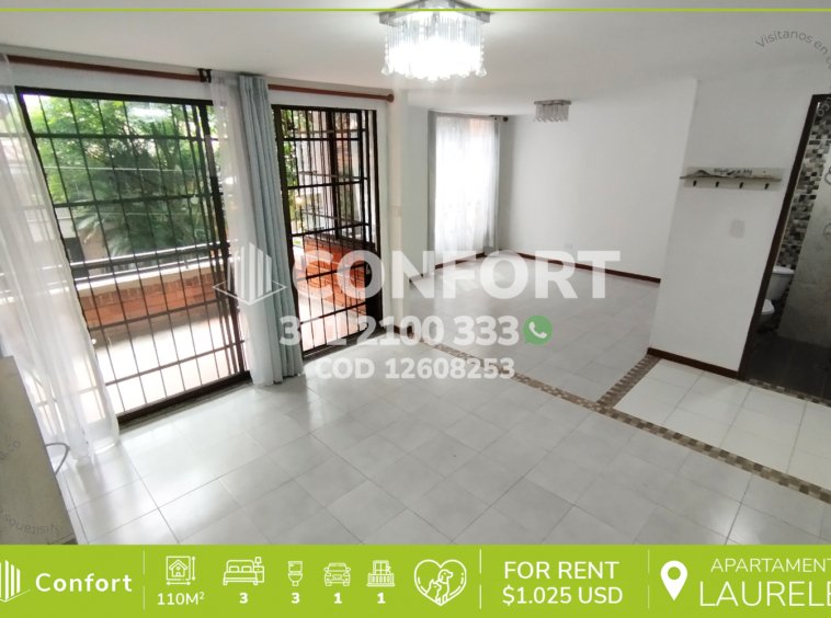 126-08-253 Inmobiliaria en Medellín arrienda apartamento ubicado en el sector de Laureles, cuenta con un área de 110mt2 distribuidos en sala comedor, cocina integral, zona de ropas, balcón, 3 habitaciones con clóset, una de ellas con baño privado, 2 baños sociales y parqueadero cubierto. Ubicado en edificio con seguridad 12/7, donde a su alrededor podemos encontrar el centro comercial Unicentro, primer parque de Laureles y UPB, con vías de acceso por las avenidas 33, regional, Nutibara y gran variedad de transporte público. CONFORT GESTORES INMOBILIARIOS – Arriendo en Medellín