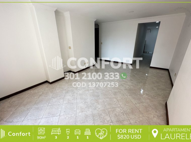 137-07-253 Inmobiliaria en Medellín arrienda apartamento ubicado en el sector de Laureles, cuenta con un área de 90mt2 distribuidos en sala comedor, cocina integral, zona de ropas, balcón, 3 habitaciones con clóset, una de ellas con baño privado, otra con conexión a amplia terraza, baño social, parqueadero y cuarto útil. Ubicado en edificio con seguridad privada 24/7, donde a su alrededor podemos encontrar Supermú, parroquia Santa Gema y el parque de Los Emprendedores, con vías de acceso por las avenidas 33, 80 y gran variedad de transporte público. CONFORT GESTORES INMOBILIARIOS – Arriendo en Medellín