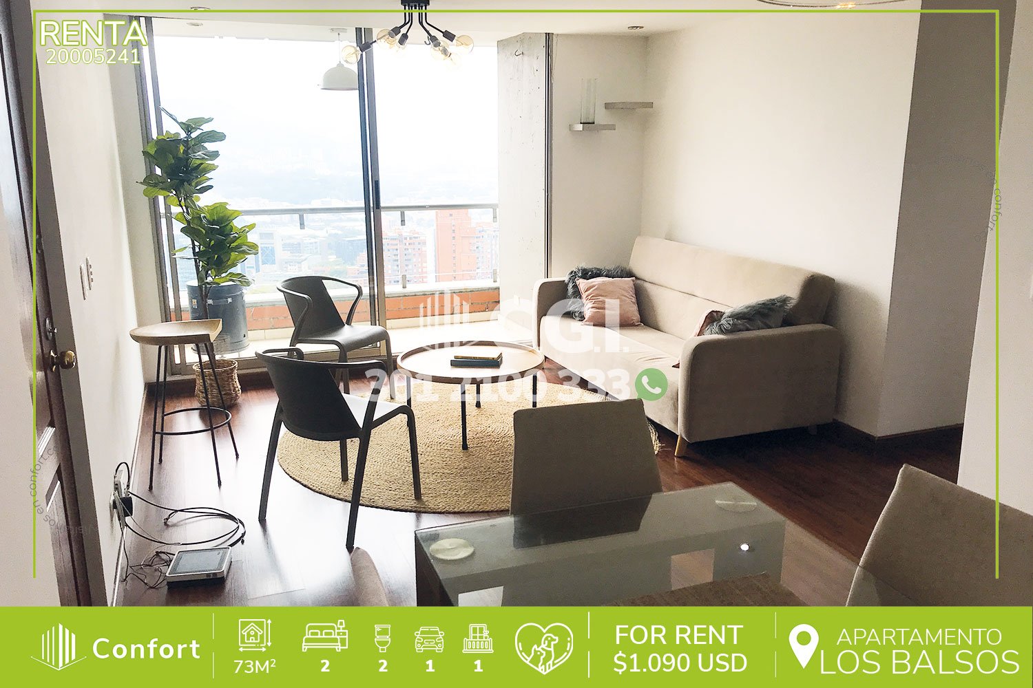 200-05-241 Hermoso apartamento disponible para la renta ubicado en el sector de los Balsos No. 2 en el Poblado, cuenta con un área de 73 mt2 distribuidos en sala comedor, balcón con vista panorámica, cocina semi integral, zona de ropas,2 habitaciones, una de ellas con baño privado, 1 baño social y parqueadero. Se encuentra en unidad residencial con seguridad 24/7 y cuenta con zonas comunes como piscinas para niños y adultos, salón social, parque infantil y zonas verdes. A su alrededor podemos encontrar museo el Castillo, supermercado la Vaquita, Pricesmart, con vías de acceso por los Balsos, Transversal Inferior y gran variedad de transporte público. CONFORT GESTORES INMOBILIARIOS – Arriendo en el Poblado – Medellín